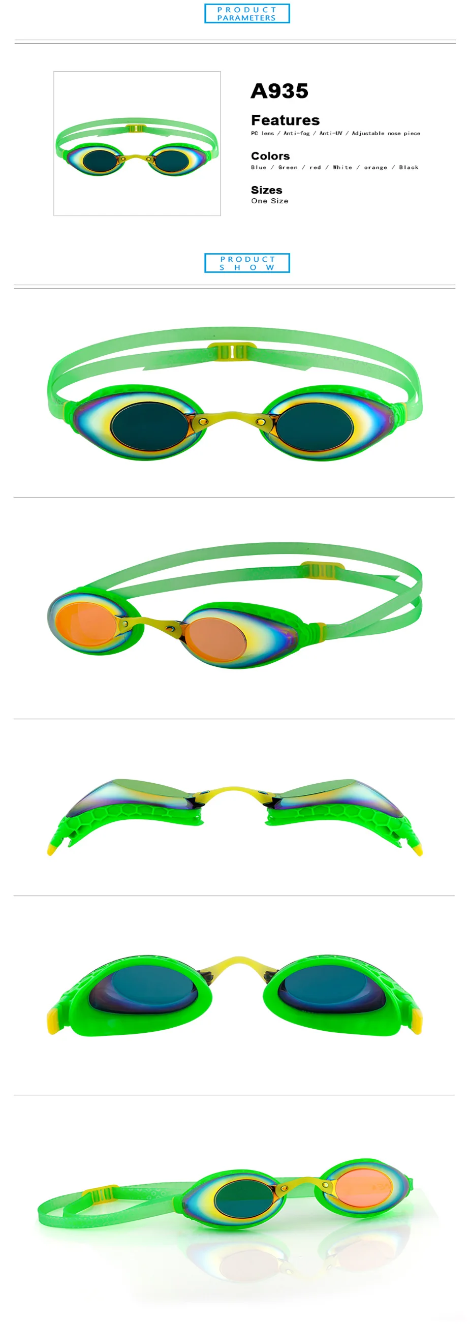 ---------------------- Описание продукта ------------------ 1. Очки A935 для гонок. 2. Поставляется с тремя разными размерами гибких носовых частей. 3. Легкие уплотнительные прокладки Hive обеспечивают удобную подгонку и защиту от протечек. 4. Прочный Двойной силикон удерживает очки на месте для надежной фиксации. 5. Легко регулировать ремешок. 6. Просто возьмите каждый конец ремешка и вытяните его горизонтально, чтобы затянуть. 7. Современное, противотуманное покрытие обеспечивает кристально чистое видение в течение нескольких часов плавания. ---------------------- Комплектация: --------------------- 1 * Номер модели: A935 очки для плавания ------------------------------ Примечания --------------------------- 1. Все наши продукты являются 100% аутентичными и 100% УФ-защитой. 2. Из-за различных настроек монитора и освещения фактический цвет изделия может немного отличаться от цвета, показанного на фотографии. 3. Замеры сделаны вручную, поэтому возможны отклонения на 0,5 см. 4. Если вы получили продукт в поврежденном или дефектном состоянии, пожалуйста, свяжитесь с нами как можно скорее.