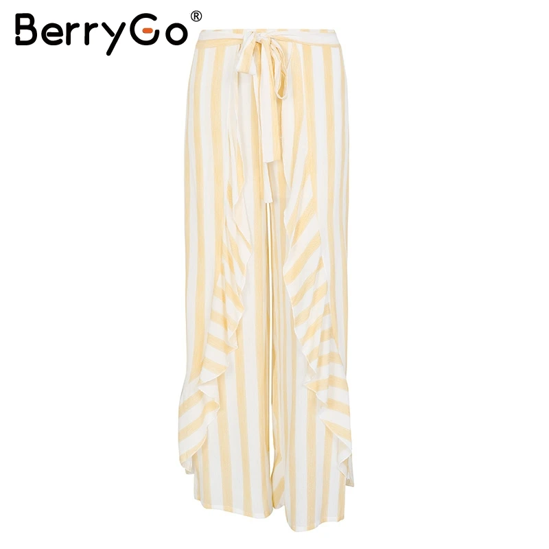 Вискозная ткань/в полоску и свободные штаны с оборкой