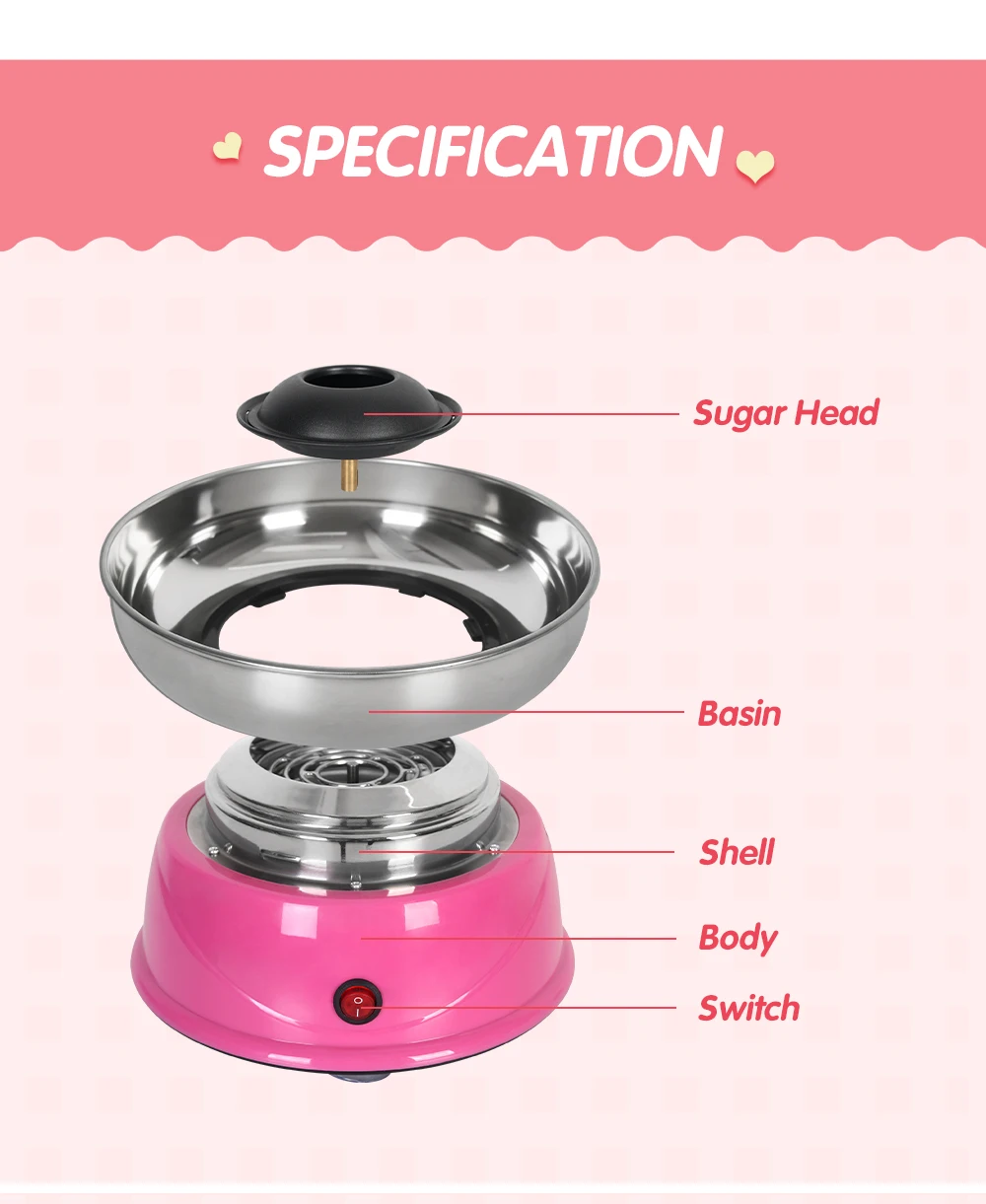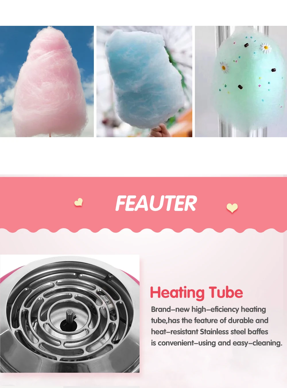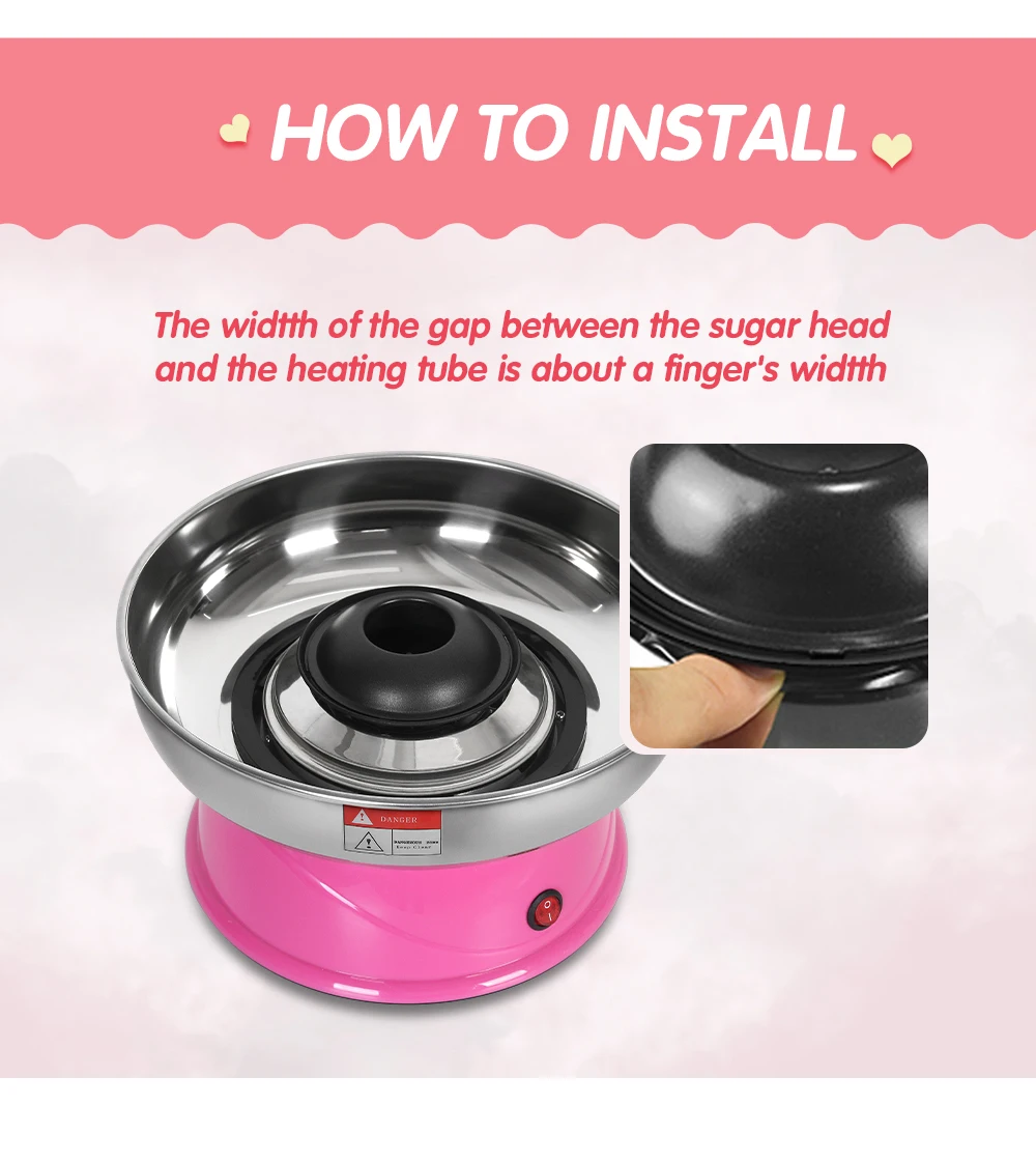 В сахарную головку нажмите выключатель питания, начните нагревать и делать хлопковые конфеты.