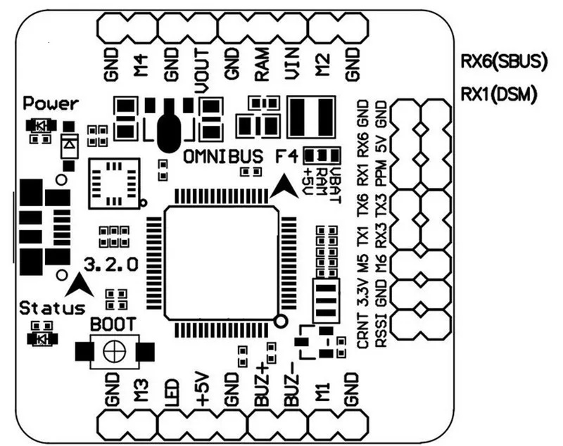 Приемник: Поддержка Sbus или последовательного порта RX интерфейс, Spektrum 1024/2048, SBUS, IBUS и так далее.
