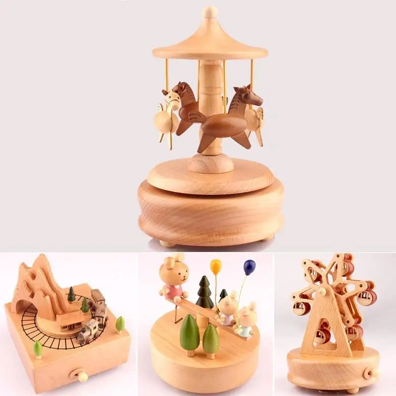 Простая деревянная музыкальная шкатулка Merry Go Round Carousel креативная домашний декор