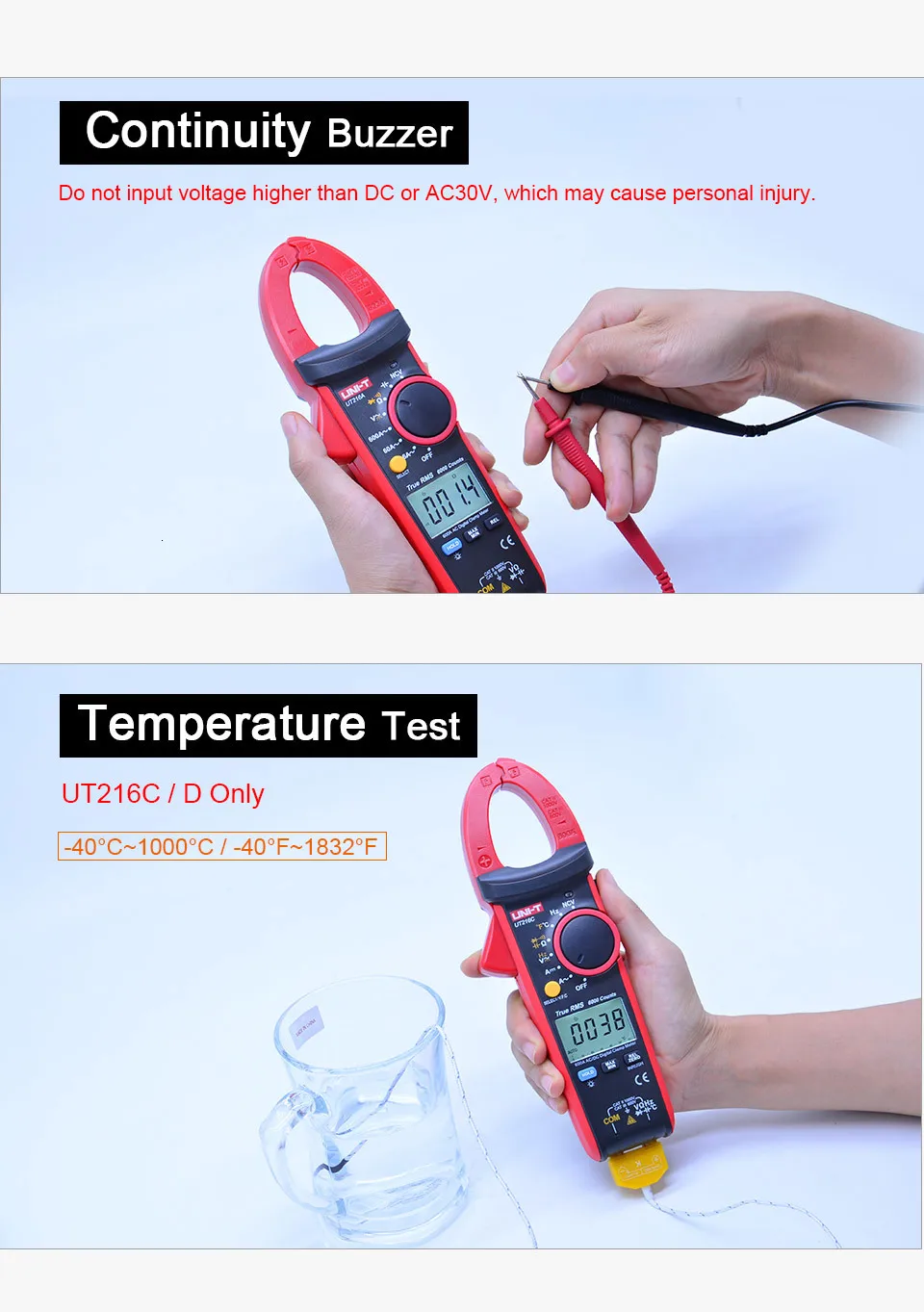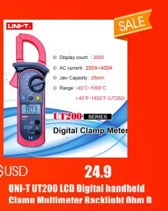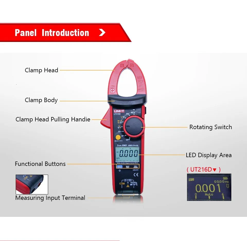 Серия UT216True RMS digital clamp meter-это практичный электротехнический измерительный прибор нового поколения, который обладает высокой надежностью, высокой безопасностью, автоматическим диапазоном и ручным типом, имеет полную защиту от перегрузки и уникальный внешний вид, более превосходно работает и является идеальным инструментом для обнаружения, Техническое обслуживание и ремонт различных вузов и колледжей, плавки, коммуникации, производства, нефти, национальной обороны, электрического, энергетического и контурного оборудования.