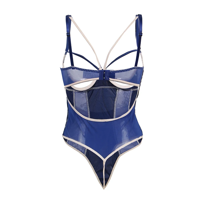Ohyeahlover комбинезон сексуальный Pagliaccetti Donna Salopette Femme модный боди RM80188 синий открытый сзади цветочные кружева Тедди размера плюс
