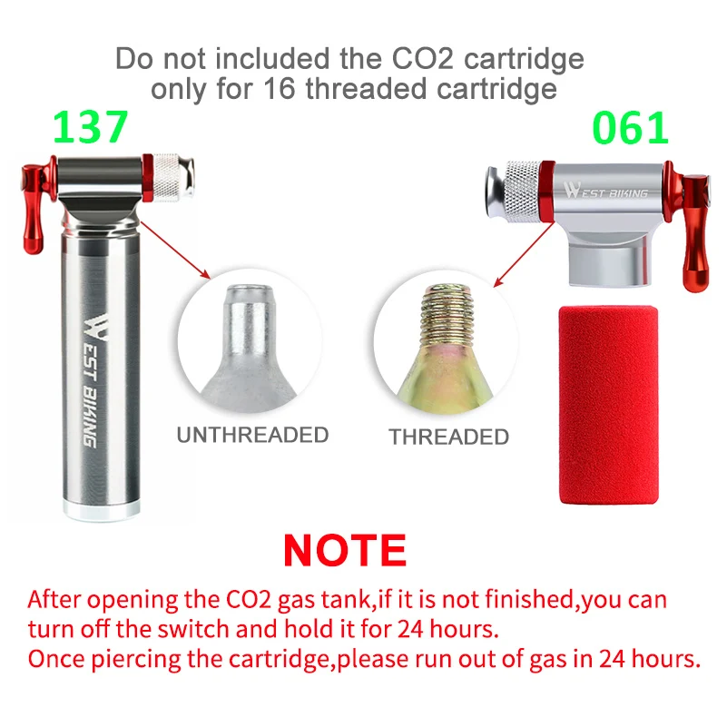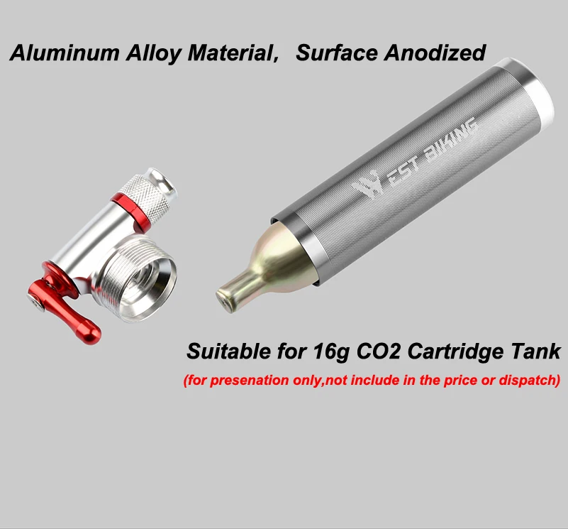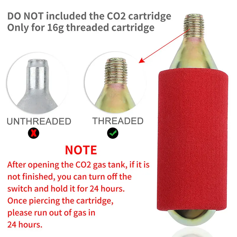 087 CO2 насос Цвет: черный/красный/серебристый/синий Клапан: Schrader / Presta Размер: около 35*30 мм (размер головки клапана) Аксессуары: насос Примечание: в комплект не входят СО2-картриджи. Особенности 1. Используется высококачественная обработка с ЧПУ из алюминиевого сплава, что гарантирует долговечность и точность всех деталей. С надежным регулятором громкости газа, прост в использовании и управлении, не протекает. Резиновый EVA рукав пены (только для картриджей 16g) помогает избежать замороженных пальцев при эксплуатации. 2. Простой в использовании и двойной клапан --- клапан управления газом отмечен блокировкой и разблокировкой узоров, скручивая головку резьбы соответственно, чтобы контролировать объем воздуха надувается в шины. И совместим как для клапанов Presta, так и для клапанов Schrader на велосипедных шинах. Просто подключите картридж и велосипедную шину, надувается за считанные секунды, позволит вам быстро кататься.