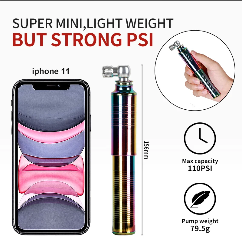 Цвет: черный/красный/серебристый Клапан: Schrader / Presta Максимальное давление: около 100PSI Размеры: около 9,7*2 см (после расширения: около 15*2 см) Аксессуары: кронштейн, винт, насос, Шариковая игла, шланг Особенности 1. Изготовлен из алюминиевого сплава, легкий и прочный, не легко сломать. 2. Подходит для клапана Schrader и клапана Presta 2. Легкий и портативный (можно положить в карман)
