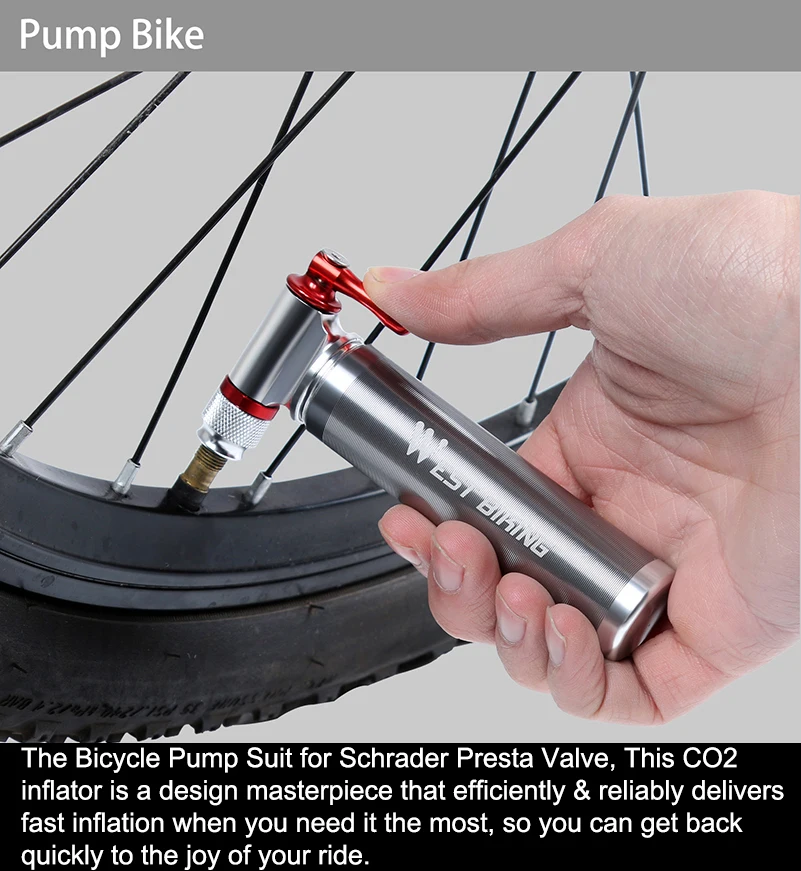 Цвет: красный/синий Клапан: Schrader / Presta Размер: около 45,3*30,9 мм (размер головки клапана) Вес нетто: около 25,3 г Аксессуары: насос Примечание: в комплект не входят СО2 картриджи