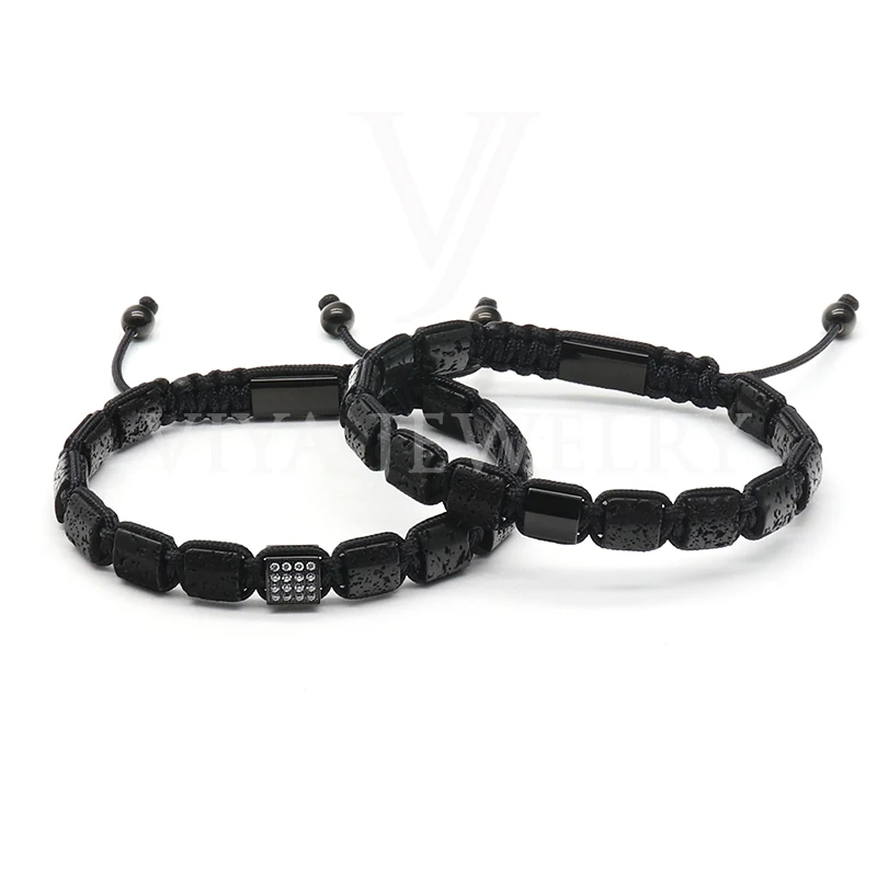 Handmade 8mm Square Lapis Beads Macrame Bracelet Blue Lapis Lazuli Beads Braided Adjustable Bracelet Square Beads Men Jewelry
