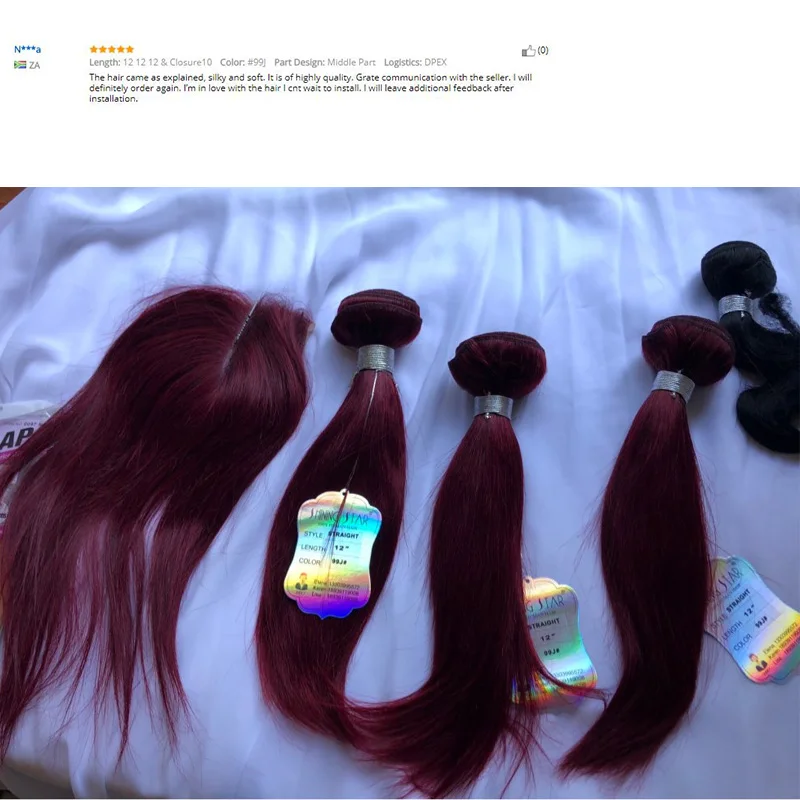Бургундия прямые волосы 3 пряди с закрытием красные перуанские волосы плетение пряди с закрытием наращивание волос Сияющая Звезда remy волосы