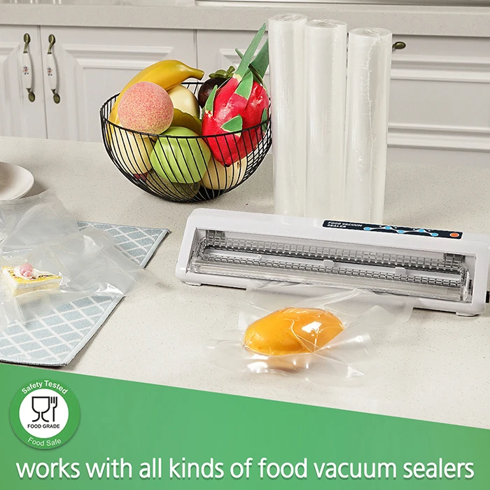 БЕЗОПАСНОЕ ХРАНЕНИЕ. Пакеты сделаны из материала без содержания BPA и подходят для хранения сырых и готовых продуктов в морозильной камере, приготовления пищи по технологии sous vide и разогревания в микроволновой печи (Примечание. Перед разогреванием в микроволновой печи в пакетах необходимо проделывать отверстия. Разогревать пищу в пакетах можно не более 60 секунд на умеренной мощности). БЕЗ использования химических примесей, БЕЗ растворителей, БЕЗ тяжелых металлов, БЕЗ запаха. ВЫСОКАЯ ПРОЧНОСТЬ. Передняя стенка толщиной 3 мил (76,2 мкм) и задняя рифленая стенка 4 мил (101,6 мкм) обеспечивают максимальную защиту и свежесть продуктов до 5 раз дольше, чем обычные пакеты. Пакеты предотвращают «морозные ожоги», обледенение и засыхание продуктов. Произведенная методом соэкструзии 7 слоев пленка является более прочной и устойчивой к образованию проколов и разрывов. ПОДХОДЯТ ДЛЯ ВСЕХ ВАКУУМНЫХ УПАКОВЩИКОВ. Универсальный дизайн пакетов позволяет использовать их со всеми зажимными вакуумными упаковщиками с нагревательными элементами. Простой в использовании. Экономьте деньги и сохраняйте свежесть продуктов. Сертификат: FDA, LFGB, ROHS, REACH, SCCP, PAHS