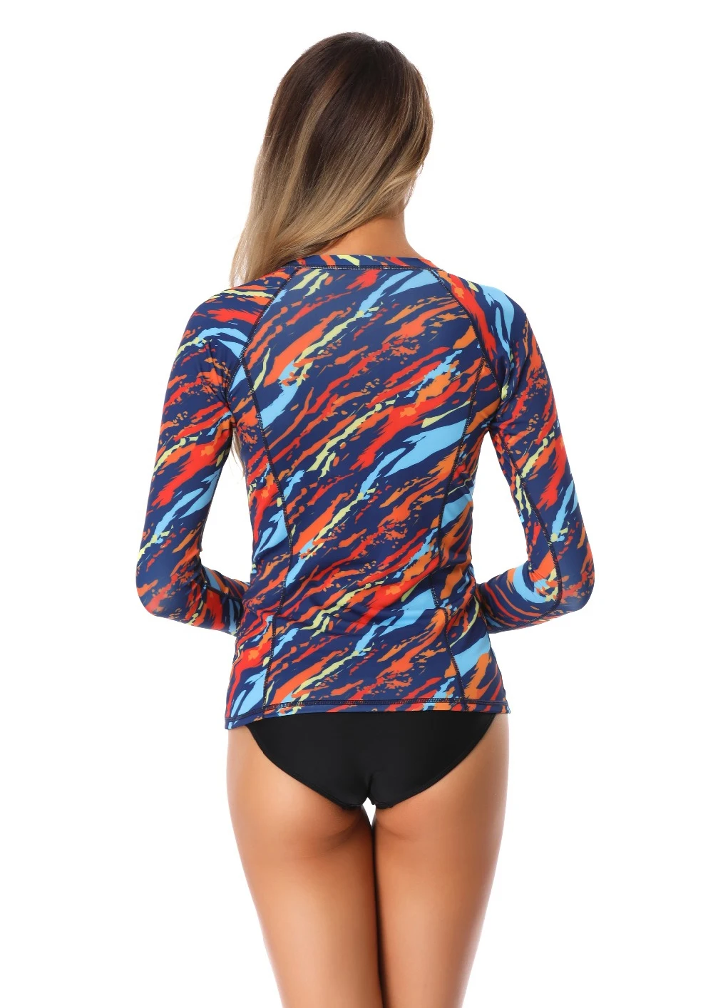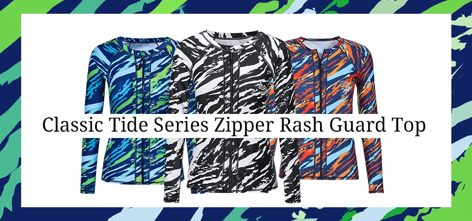 Женский купальник с длинными рукавами AXESEA Rashguard, Солнцезащитный купальник с принтом и застежкой-молнией спереди, топ с вырезом лодочкой UPF50 + рубашка для серфинга
