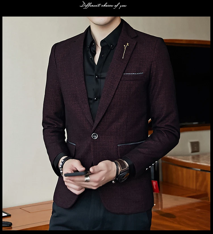Мужской стильный приталенный блейзер в полоску и горошек, весенне-осенний повседневный пиджак в деловом стиле