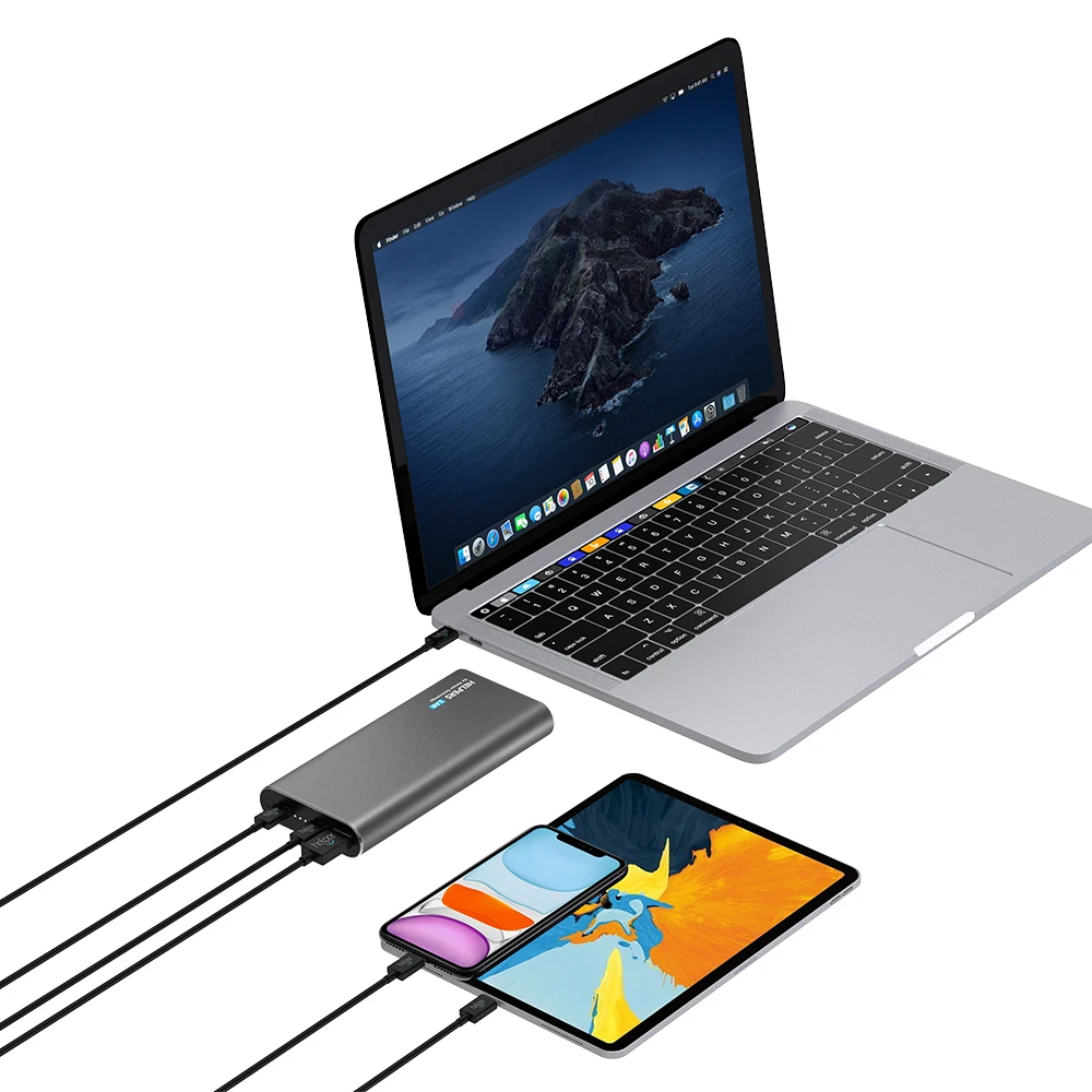 USB c PD мобильного источника питания имеет объем 20 000 мА * ч, USB-A порт под названием «QC3.0 выходной порт, его Фактическая производительность не ограничена QC3.0, поддерживает выход до 18 Вт. 60 Вт USB-C порт поддерживает двунаправленный Быстрая зарядка PD. power bank СУММАРНАЯ ВЫХОДНАЯ МОЩНОСТЬ может достигать 90 Вт.