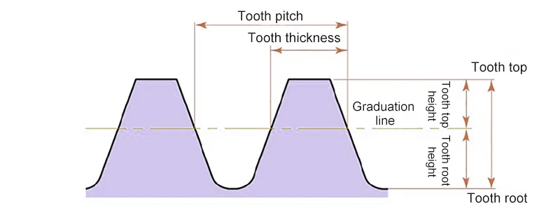 Основа толщины зуба (ов) составляет половину шага зуба. s = & pi;m/2
