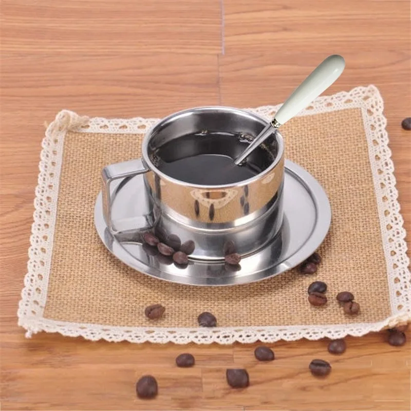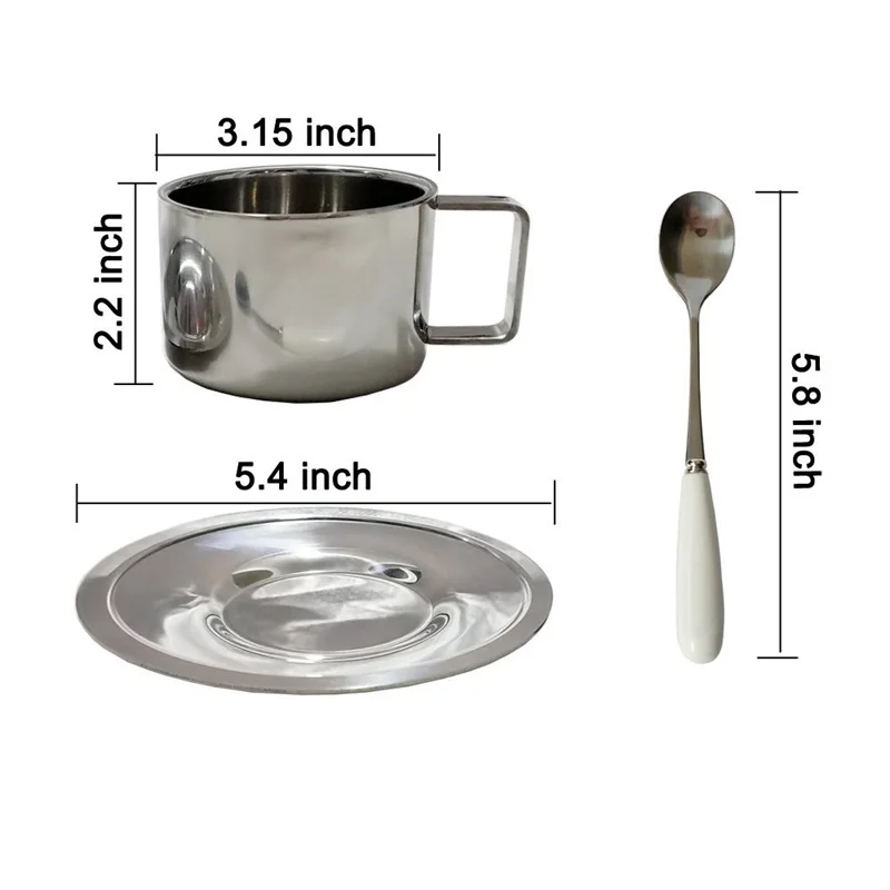 Size: Cup body: 3.15 * 2.2inch; Spoon: 5.8inch; Saucer: 5.4 * 5.4inch