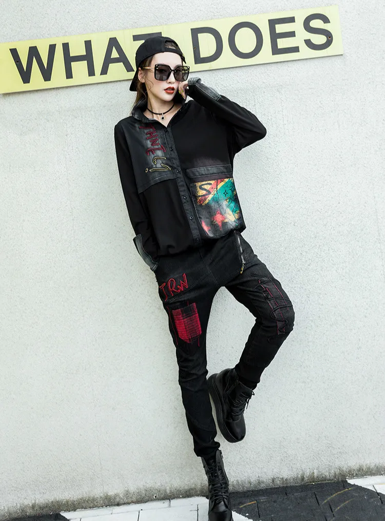 Роскошные клетчатые Лоскутные Джинсовые рубашки с 3d принтом