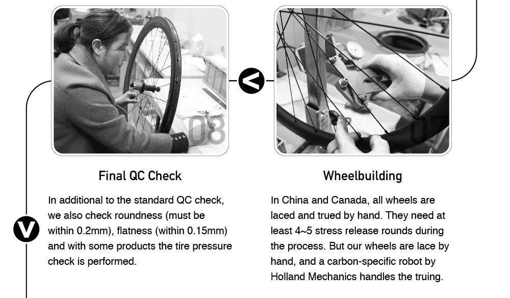 Внутренняя стенка колеса гладкая, угол отверстия спиц более точный, снижая риск поломки крышки спиц