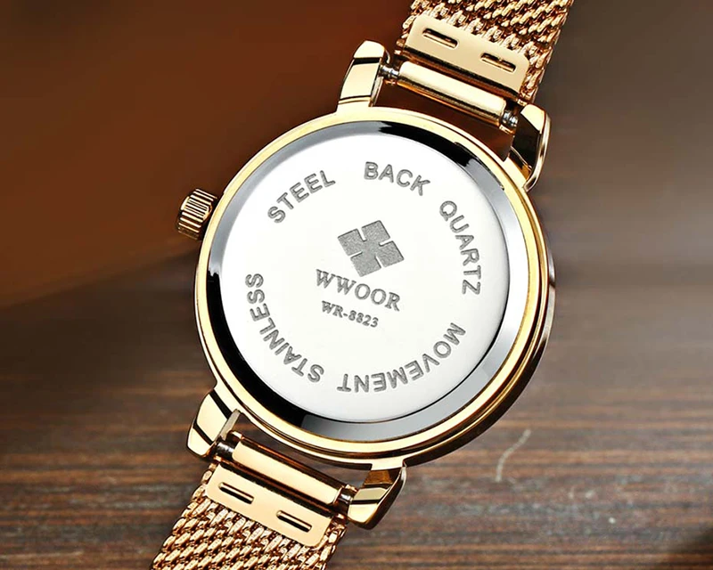 Женские наручные часы WWOOR, повседневные кварцевые часы со стальным сетчатым ремешком и золотым браслетом, 2019
