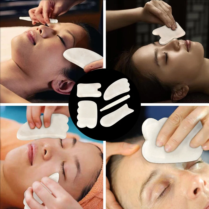 Натуральный белый нефрит скребки наборы кристалл энергии камень Традиционный гуаша доска для тела плечо шеи массаж спины здоровье и гигиена