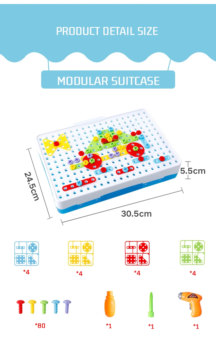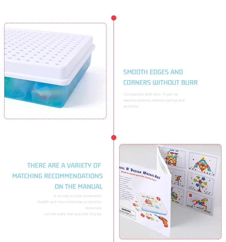 Содержимое: 106 шт. пластика, 1 сверла для эмуляции (без батарей), 1 книга, 1 контейнер для ручной работы