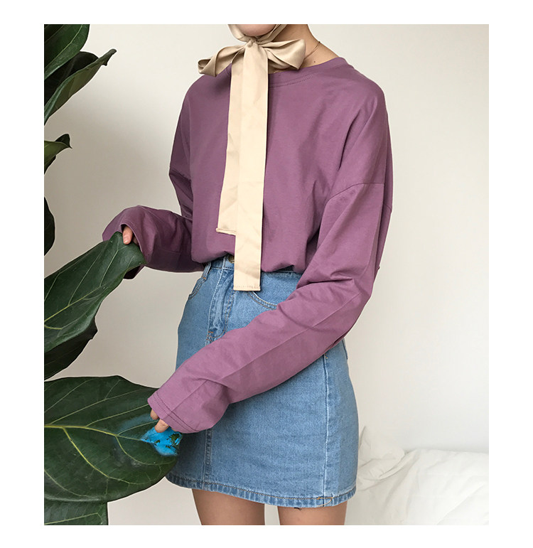 8 цветов 2018 корейский стиль летние консервативный Стиль Футболки с длинным рукавом женская футболка femme