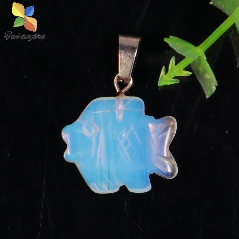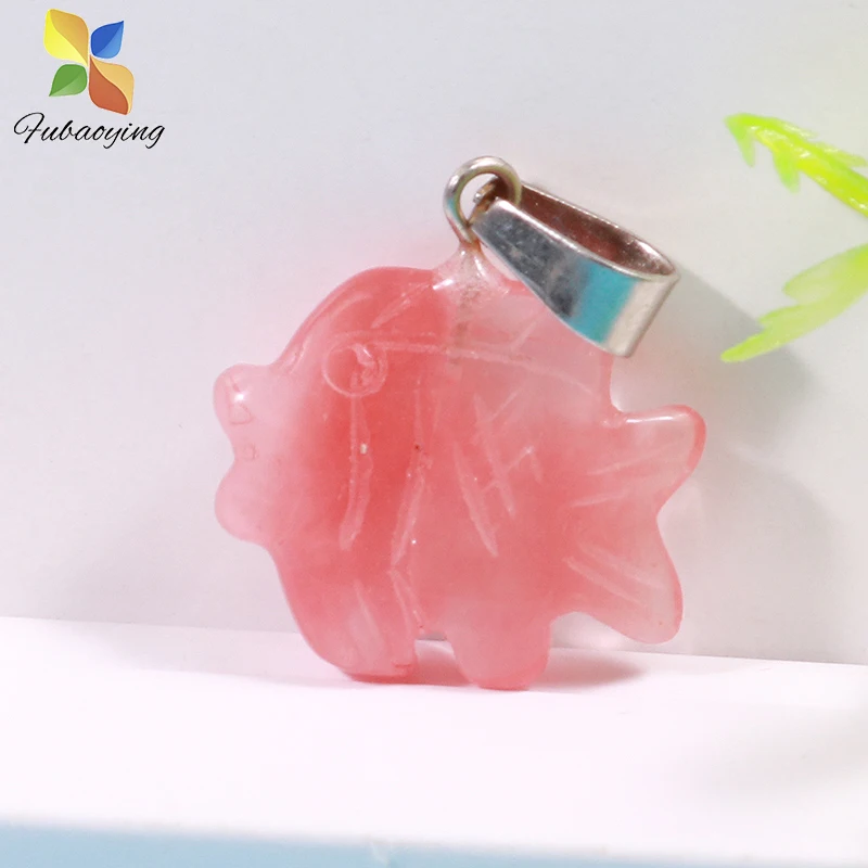 Fubaoying оптовая продажа 12 шт натуральная Подвеска из камня и хрусталя Смешанная резьба Рыба ожерелье Бесплатная доставка для DIY ювелирных изделий