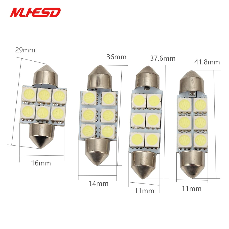 Тип основания: C5w Festoon Тип СВЕТОДИОДА: 5050 Напряжение: 12 В постоянного тока Количество СВЕТОДИОДНЫЙ: 6 светодиодный s Мощность: 1 Вт Люмен: около 200 лм Цветовая температура: 6000K -6500K (чисто белый) Размер: 31 мм/36 мм/39 мм/41 мм Номер перекрестной ссылки: DE3175, DE3021, DE3022, DE3023, 3021, 3022, 3175. Продолжительность работы: Более 100000 часов, равна 80 лет долгий срок службы Использование: дверной светильник s, над головой светильник s, бардачок светильник, светильник чтения s, подсветка багажника светильник s, лицензия/номерной знак светильник s. И т. Д. Упаковка включает: 10 шт. светодиодные лампы 【Особенности 】 Простая установка, подключи и работай, c5w festoon светодиодный автомобильный светильник. Встроенные ограничительные резисторы. Обычно используется для внутреннего освещения для замены старого гирлянда. Низкое энергопотребление; Экономия энергии и продвижение окружающей среды