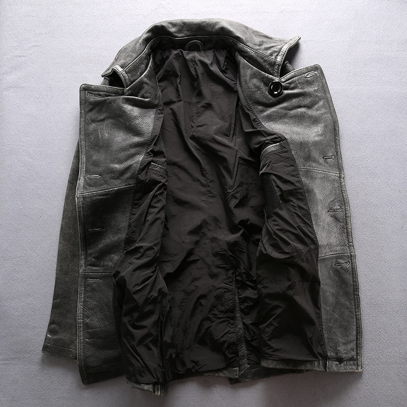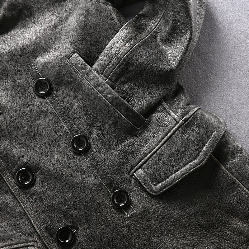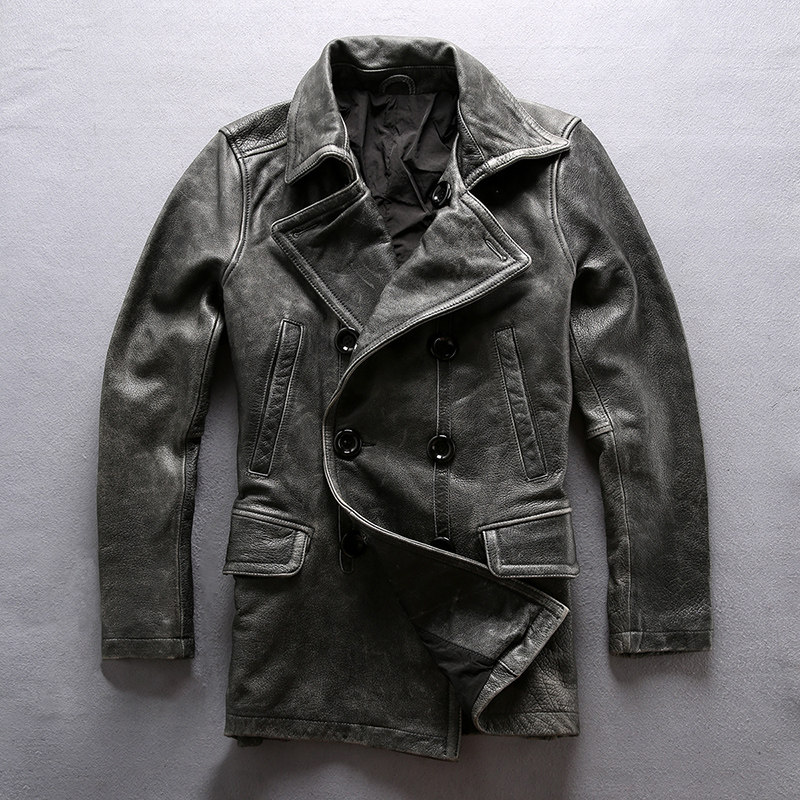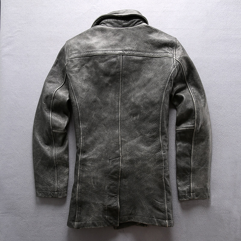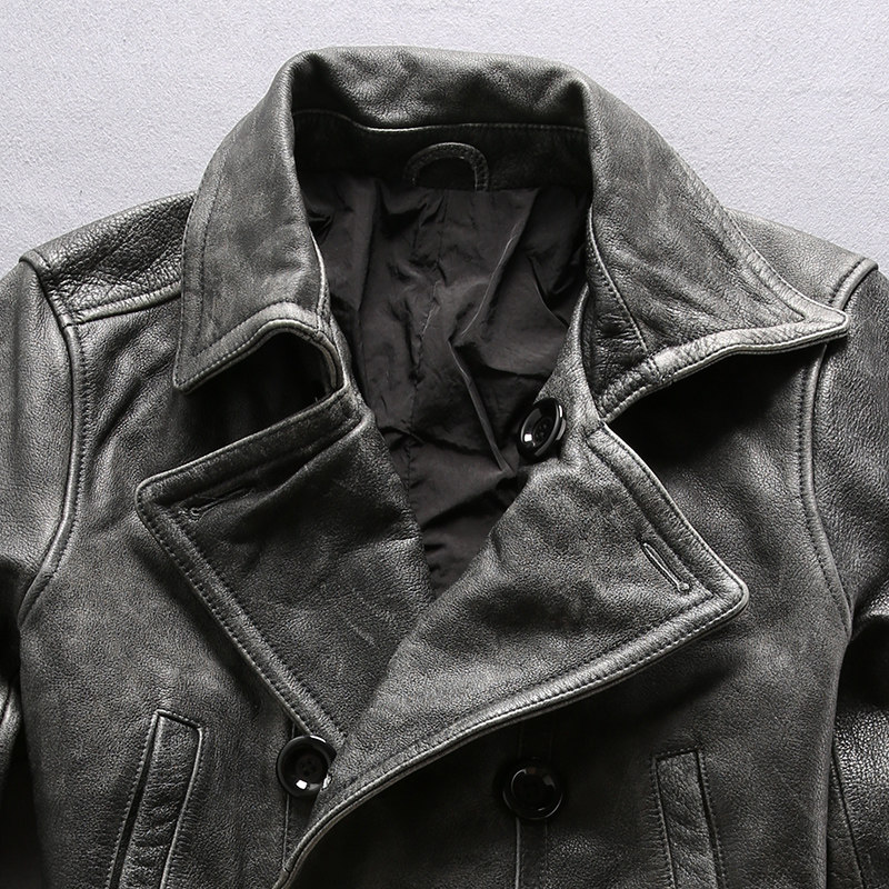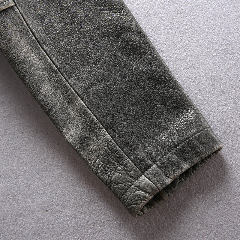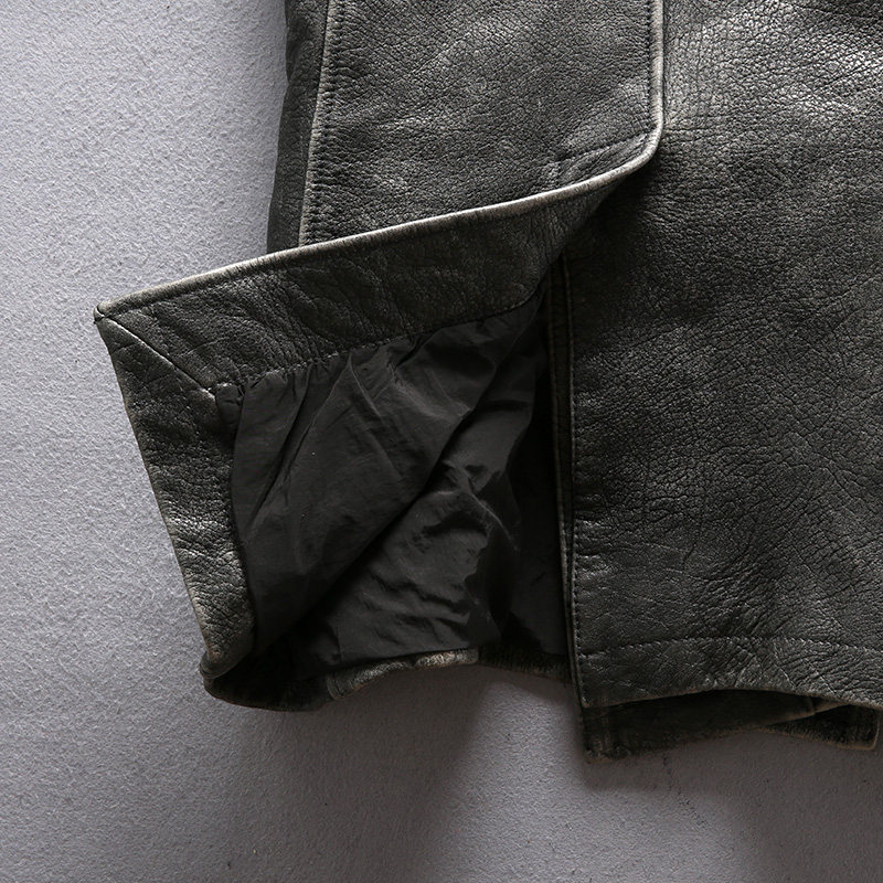 Мужская винтажная байкерская куртка коричневая короткая из натуральной