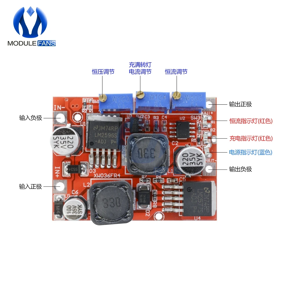 Свойства этого модуля: это неизолированный понижающий постоянный ток, модуль зарядки постоянного напряжения (CC CV)
