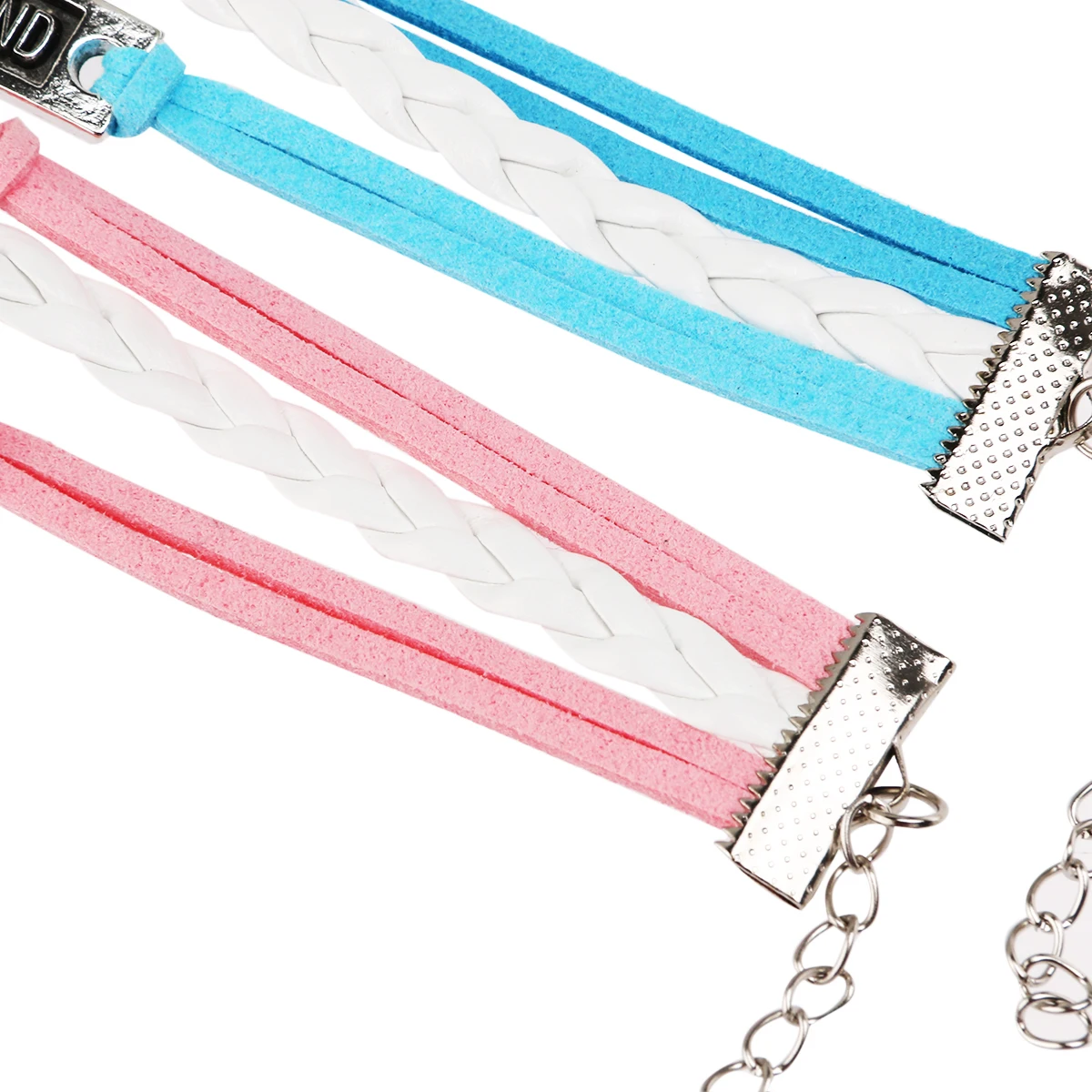 2шт регулируемый лучший друг дружба PU браслет Wirstband (розовый + синий)