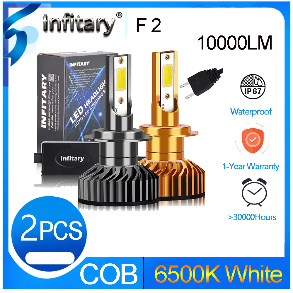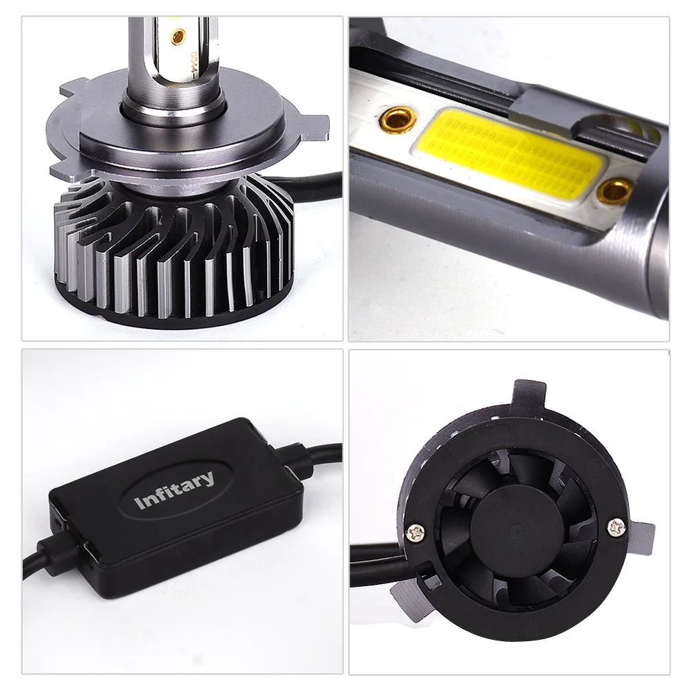 Infitary 2 шт. светодиодный светильник для головы автомобиля 72 Вт 10000LM 6500 к H7 светодиодный H4 H1 H11 H3 H13 H27 880 9006 9007 Авто фара противотуманный светильник Bulb12V Основные преимущества: Размеры: мини-Размеры, подходит для большинство автомобилей Луч: хорошая форма луча в линии и прожектора Чипы: чипы COB, высокое качество и долгий срок службы; Прочная фиксация заклепок (Многие другие чипы автомобильных фар фиксируются винтами; Их легко отвалить) Материал: металлический материал, более роскошный и длительный срок службы Зажимное гнездо: прочный металлический зажим, вращающийся на 360 градусов для регулировки луча Адаптер: внешний адаптер для более длительного срока службы и plug-play, С защитой от помех, функция декодирования для большинство автомобилей. Вентилятор: высокая скорость 12000 об/мин для лучшего охлаждения и более длительного рабочего времени Водонепроницаемый: хорошо запечатанный, высокая степень водонепроницаемости, IP 67 Особенности: Мощность: 72 Вт/комплект Световой поток: 10 лм/комплект Рабочее напряжение: 8-48 В постоянного тока (подходит для транспортных средств 12 В) Цветовая температура: чистый белый 6500K IP65 Номинальное уплотнение воды и пыли, угол луча 360 градусов Материал: авиационный 6063 алюминиевый профиль Рабочая температура: -40-80 градусов Цельсия Срок службы более 600 часов Использование: фара Посылка включает в себя: 2x светодиодный лампы для фар