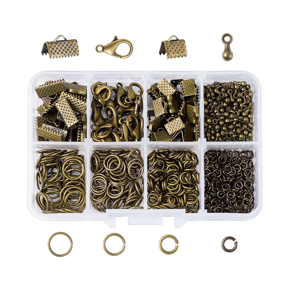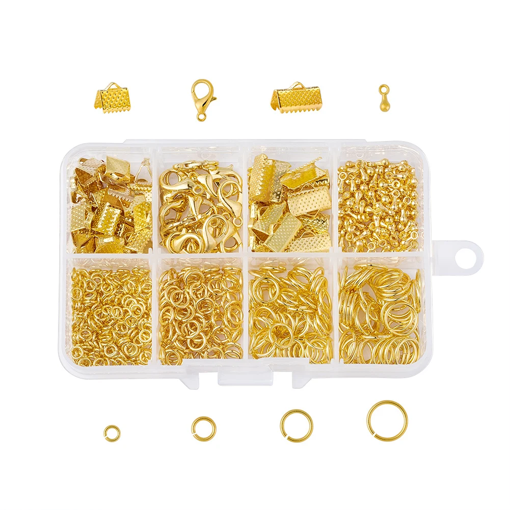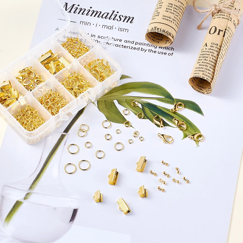1 коробка 4 цвета набор ювелирной фурнитуры с застежками в виде когтей-лобстеров Ленточные концы кольца для браслета DIY аксессуары ручной работы