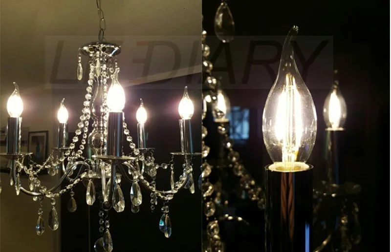 LEDIARY 5 шт./лот высокая яркость диммируемая C35 E14 Светодиодная лампа накаливания ретро Edison LED E14 прозрачная лампа 2 Вт/4 Вт/6 Вт 220 В Холодный/теплый белый
