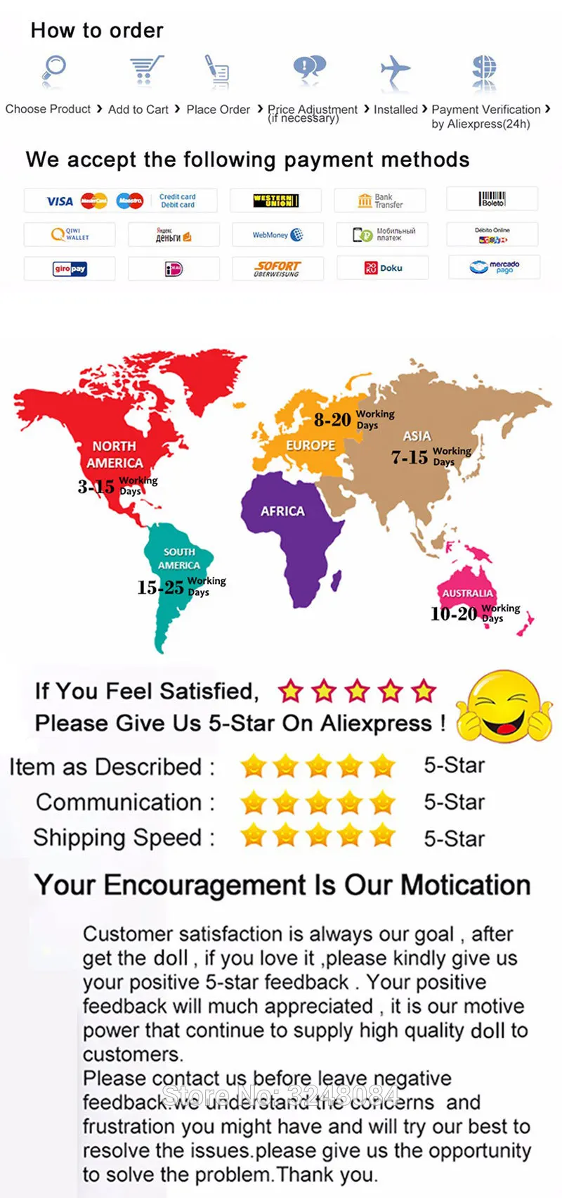 2.Если у вас есть какие-либо проблемы с нашими товарами или услугами, Пожалуйста, не стесняйтесь связаться с нами, прежде чем оставить отрицательный отзывы. Мы сделаем все возможное, чтобы решить любые проблемы и предоставить Вам лучшее обслуживание клиентов.