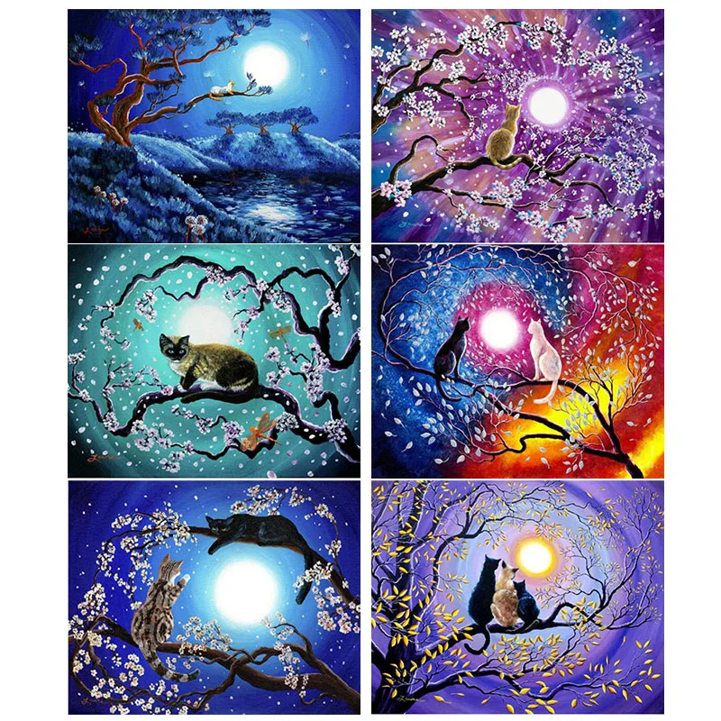 Картина в виде кота бриллианта лунного света три черных дерево сделай сам 3D
