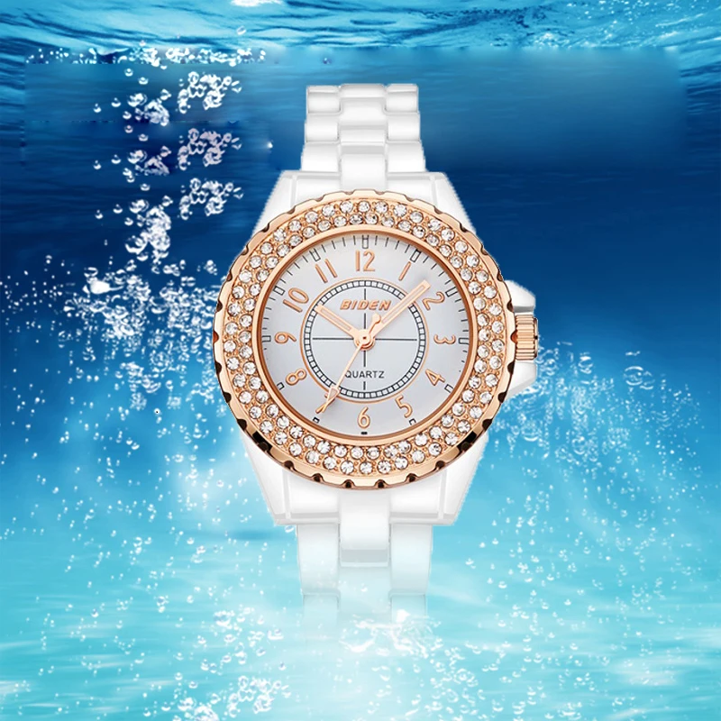 Женские керамические часы BIDEN, модные брендовые часы цвета розового золота со стальной застежкой-бабочкой, летние часы в подарок