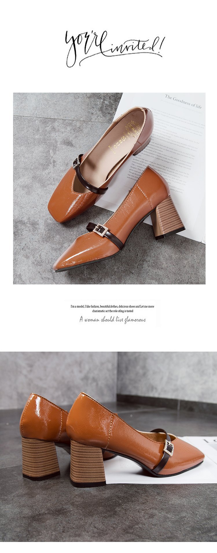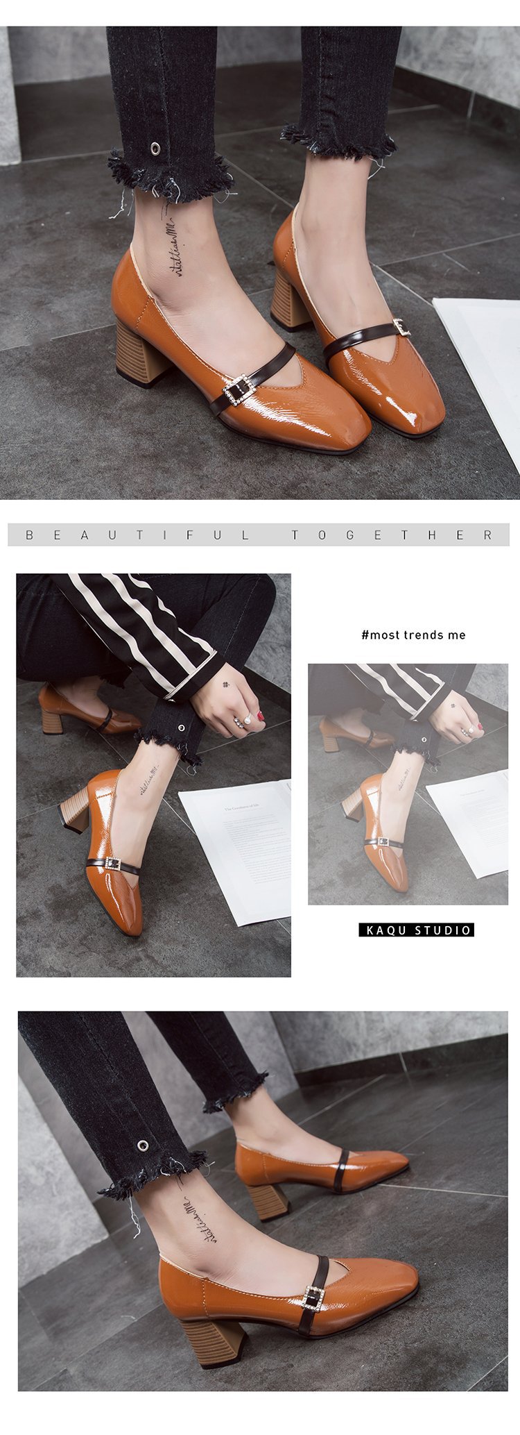 Роскошная Брендовая женская обувь на толстом каблуке с металлическим украшением