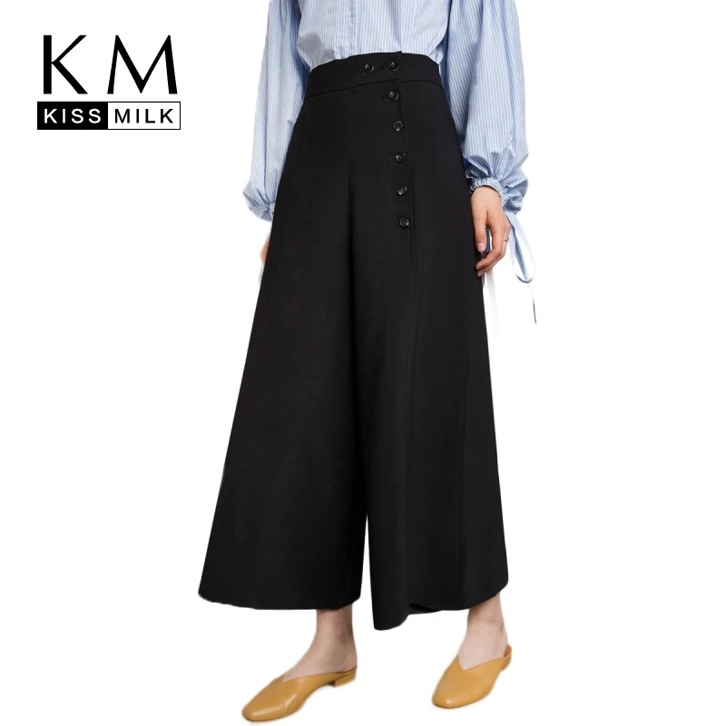 Женские прямые брюки до щиколотки из искусственной кожи с широкими штанинами и