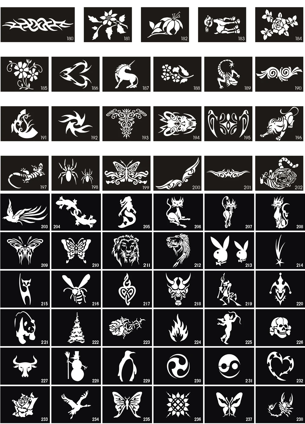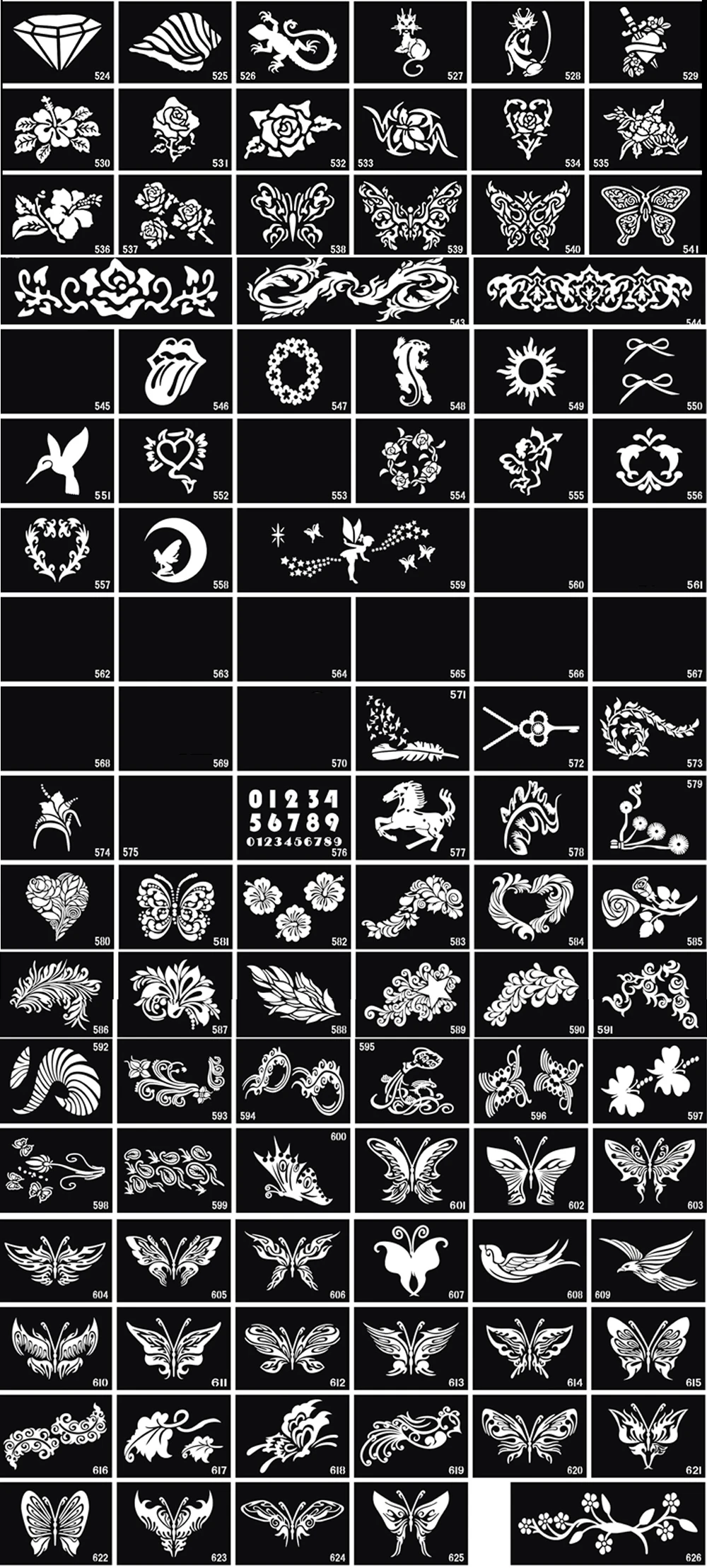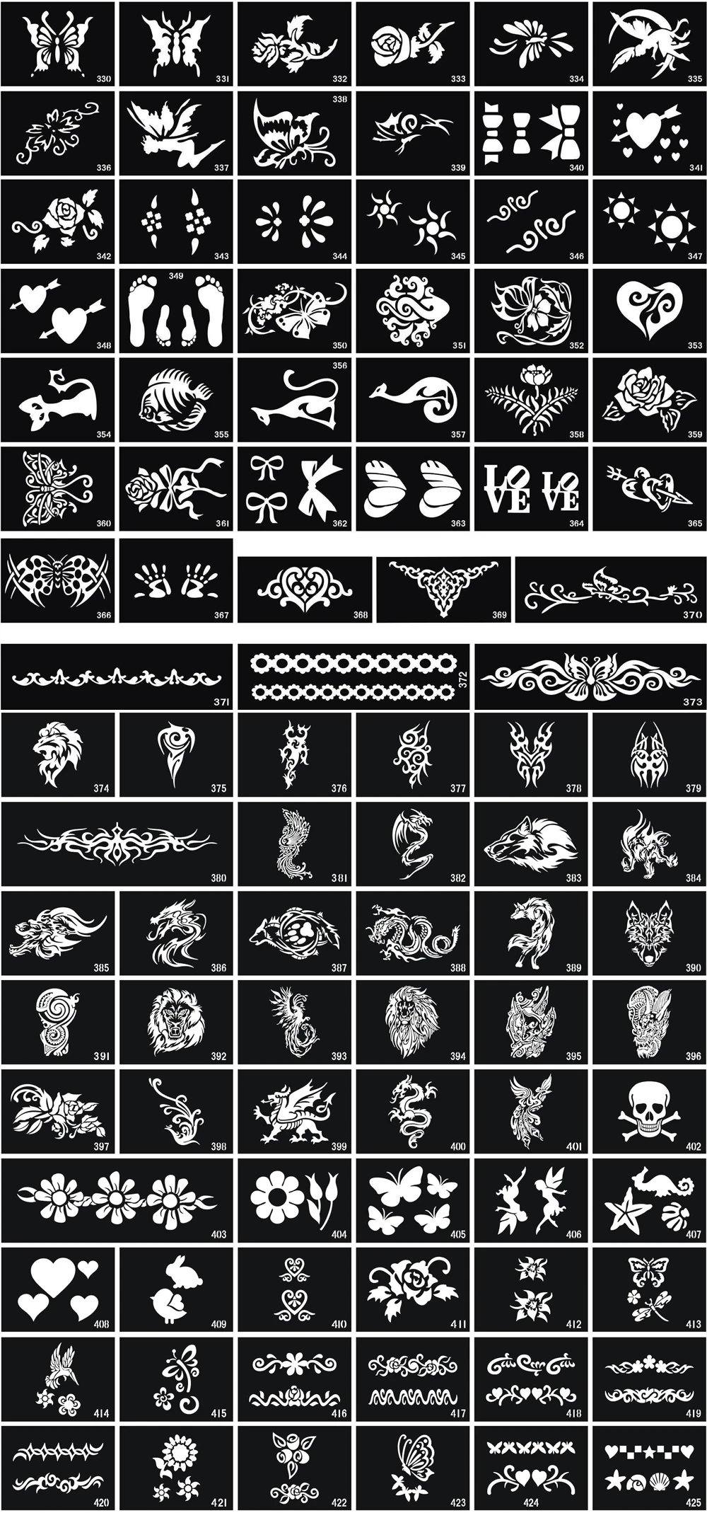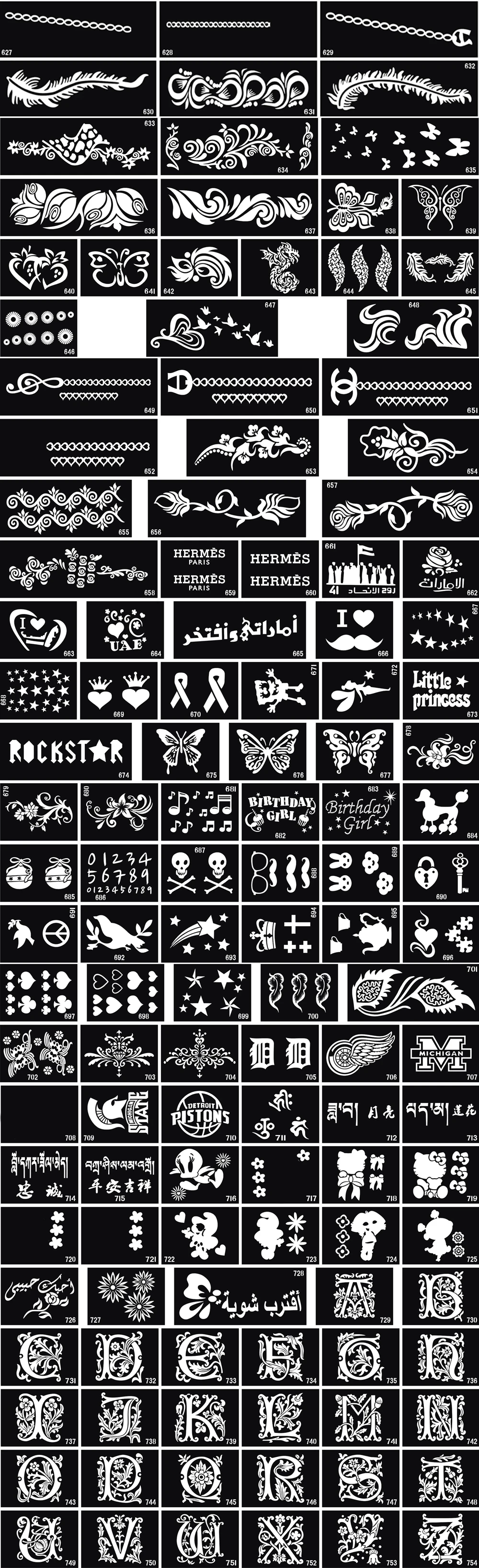 Размеры: 11*8 см, 16*6 см, 13*6 см, Feactures: * Простота в использовании, * Возможность повторного использования при тщательном и правильном использовании метода, * Используется для тату с блестками и аэрограф. Примечание: Покупатель получит 500 листов высококачественных трафаретов. На фотографиях показаны только некоторые образцы. Актуальный комплект содержит Больше узоров, и это может быть не так, как на фотографиях. Вы можете сказать нам модель трафарета татуировки, которую вы хотите, и количество каждой модели, в противном случае мы отправим их случайным образом. Вы можете выбрать из следующих номеров дизайна: