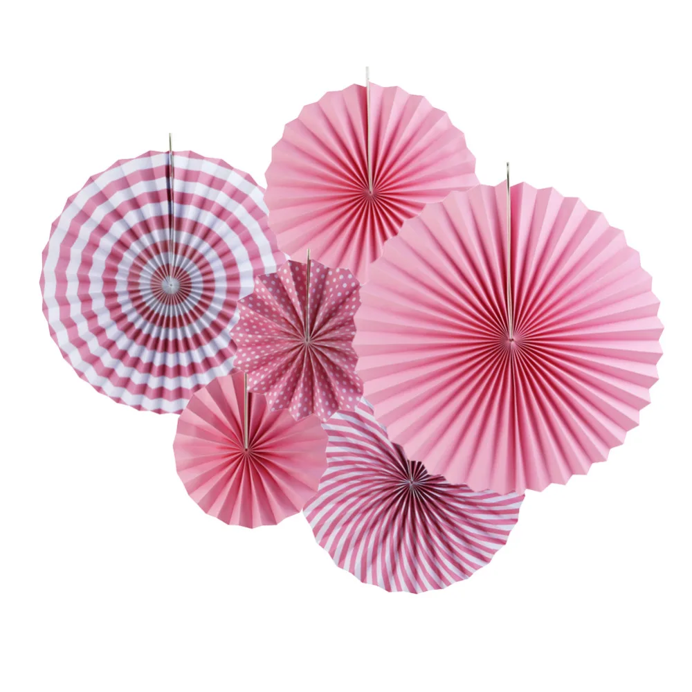 1 комплект (6 шт.) розовые бумажные вентиляторы (2 шт. 40 см, 2 шт. 30 см, 2 шт. 20 см)