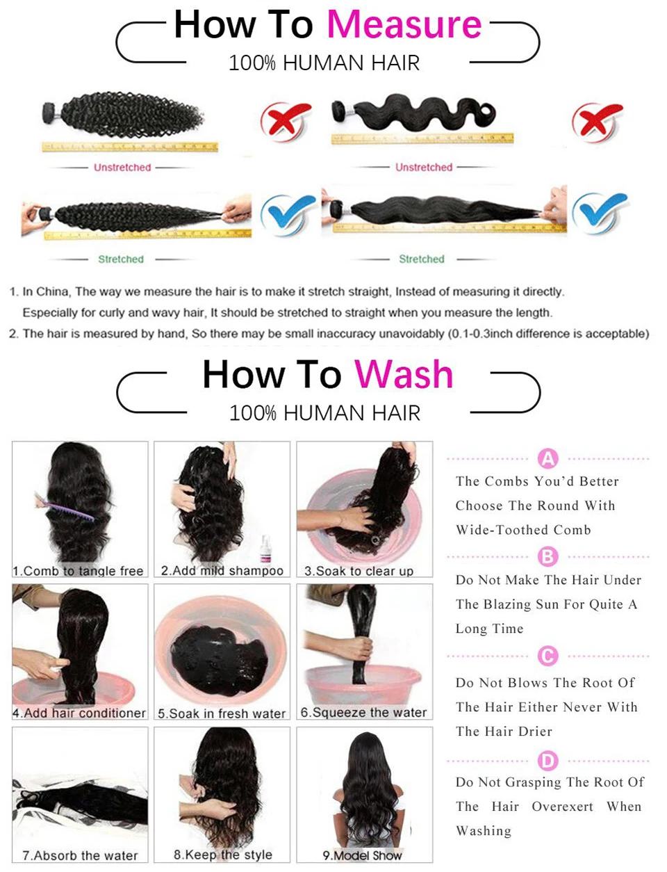 В1: Можно ли постирать или отбеливать волосы? Каждый пучок волос поступает от продавца, волосы полностью натуральные и никогда не обрабатывались. Затем мы выбираем этот вид волос, который не слишком толстый и не слишком тонкий. Это очень легко принимает цвет и отбеливать. В2: Могут ли волосы быть железными? Это может быть железная плоска, пожалуйста, не выше 150C, когда вы это сделаете, или волосы будут разрушены. Также волосы вернутся к естественным волнистым волосам после того, как вы его постираете или загладите утюгом. В3: почему плетение волос запутывается? Как правило, ваш плетение волос запутывается из-за сухости, роста масла и грязи, пота и не каждый день расчесывается (широкая зубная расческа). Убедитесь, что вы моете и омолаживаете волосы не реже одного раза в неделю, два раза в неделю-лучше. Используйте увлажняющие капли или обратитесь к стилисту для получения дополнительной помощи. В4: почему моё плетение волос замедляется? Во-первых, аккуратно протирайте волосы пальцами или расческой с широкими зубцами, чтобы предотвратить выпадение. Для вьющихся волос, пожалуйста, не используйте расческу. Во-вторых, после стирки, пожалуйста, ухаживайте за волосами с маслом для волос, тогда волосы будут шелковистыми и мягкими.