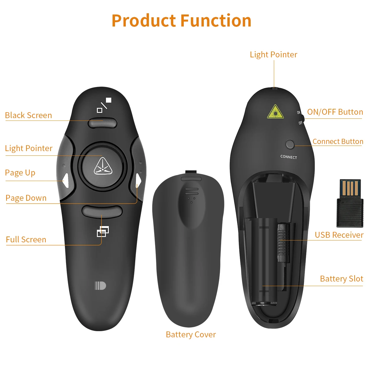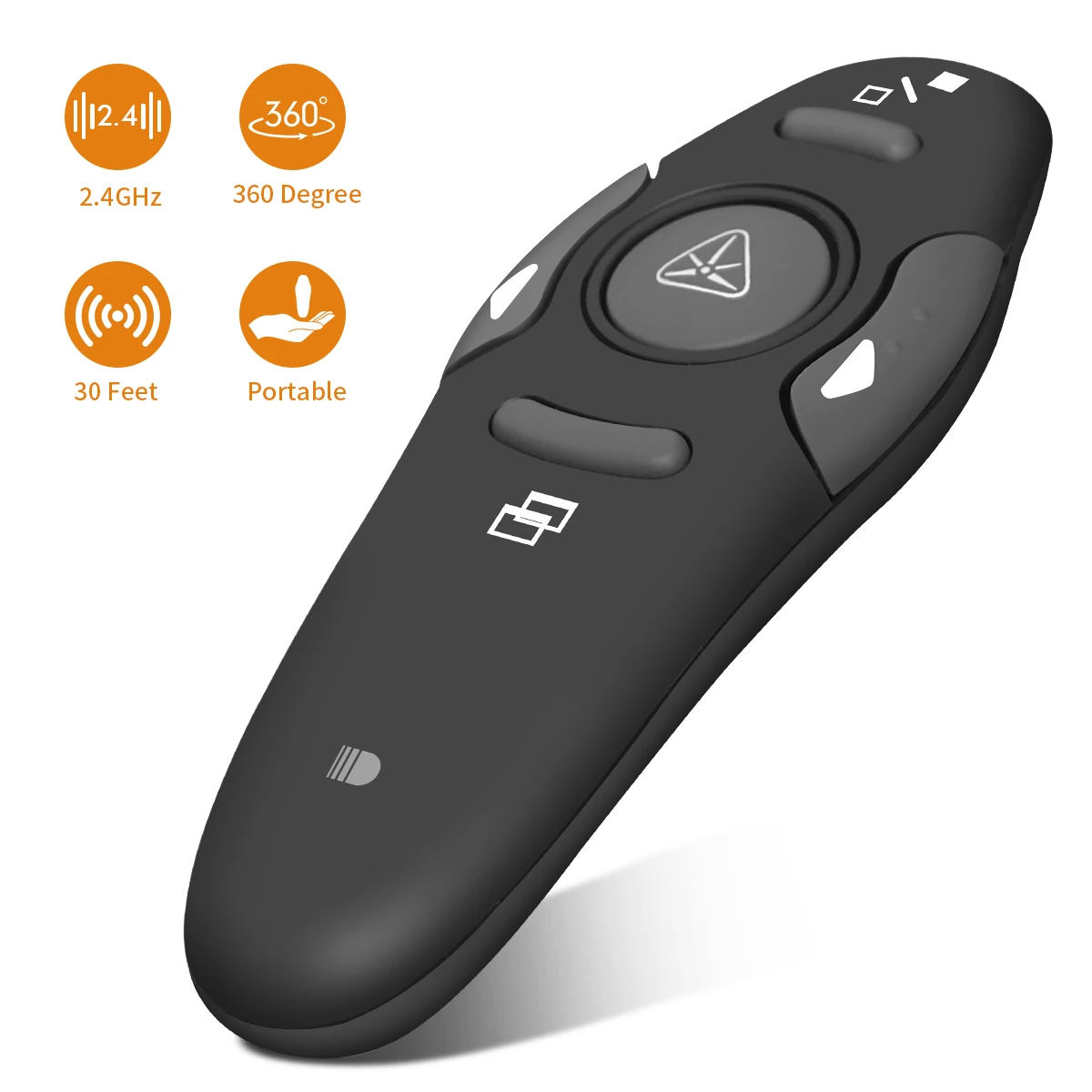 Блестящий зеленый свет: зеленый свет, излучаемый кликером PowerPoint, в 10 раз ярче, чем красный свет, легко увидеть на любом экране презентаций, таком как телевизор, ЖК-экран.