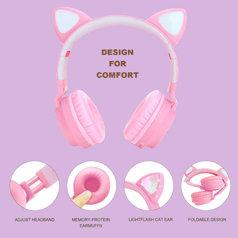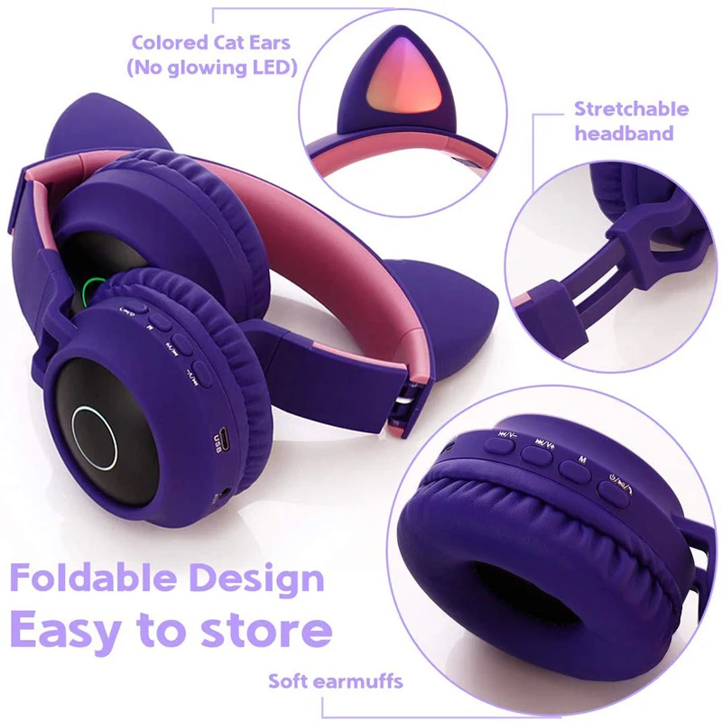 Кошачьими ушками Bluetooth 5,0 наушники светодиодный Шум шумоподавления для девочек детские милые наушники Поддержка TF карта Jack 3,5 мм Mic Беспроводной наушники