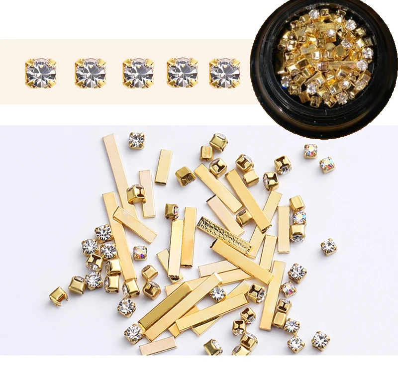 1 коробка страз для дизайна ногтей металлическая основа кристалл драгоценный камень/Золотой металлический гвоздь 3D украшения для ногтей заклепки металлические мульти Шпильки горный хрусталь