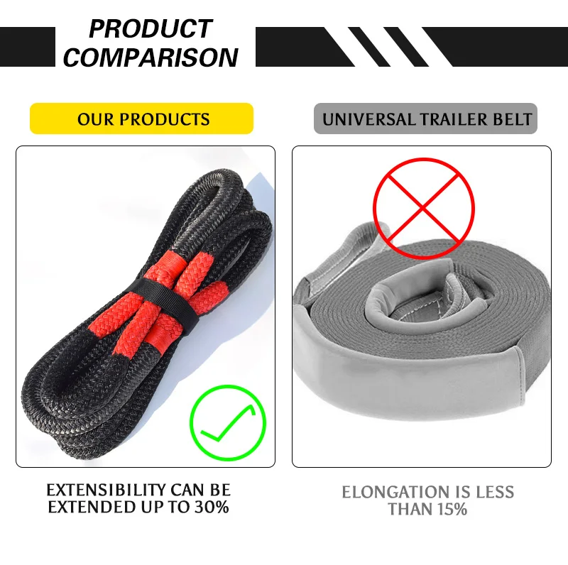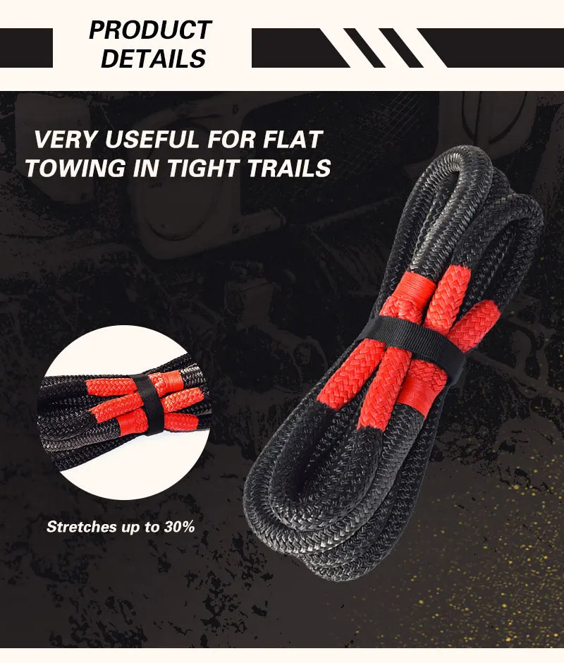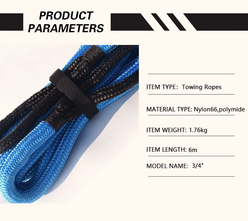 12 мм * 6 м Прочность на разрыв: 3340kgs 19 мм * 6 м Прочность на разрыв: 8200kgs Цвет: черный, синий, оранжевый Материал: 100% двойной плетеный нейлоновый Канат Поверхность: виниловое полимерное покрытие Герои: Водостойкий, УФ и абразивный Позволяет даже тянуть во время восстановления Очень полезно для плоской буксировки в плотных тропах Тянется до 30% Снижение нагрузки на компоненты транспортного средства по сравнению со статическими буксировочными ремнями