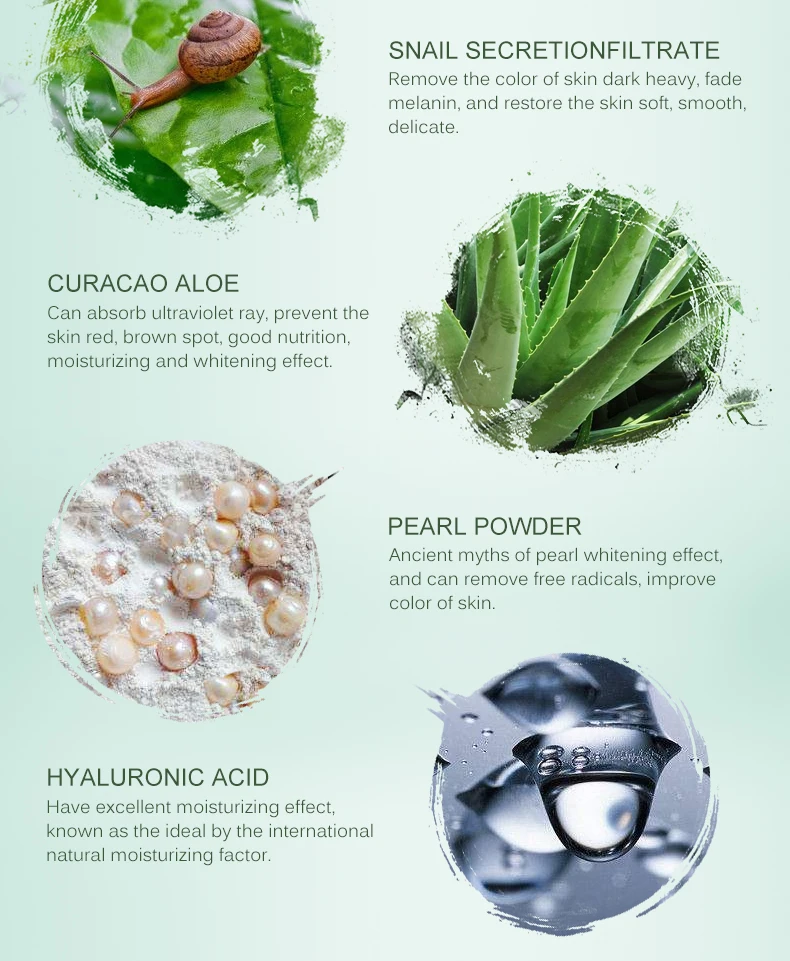 Гидролизованный коллаген, гиалуроновая кислота. Грушевый порошок стеариновая кислота ацетил шесть пептидов-1 каприловая/каприковая кислота триглицерид пептид-1 и фильтрат секреции улитки. Сафлор (GARTHAMUS TINCTORIUS) масло семян, кольцо два полидиметилсилоксана (саргассум фузифор, йовулярные морские водоросли ME центелла) экстракт Centellaasiatica экстракт алоэ вера (Азиатский) Алоэ барбаденсис) сок листьев порошок соррель (полигонум капитум) экстракт, метил изотиазолон, натрия акрилат/два метилтауратных сополимера