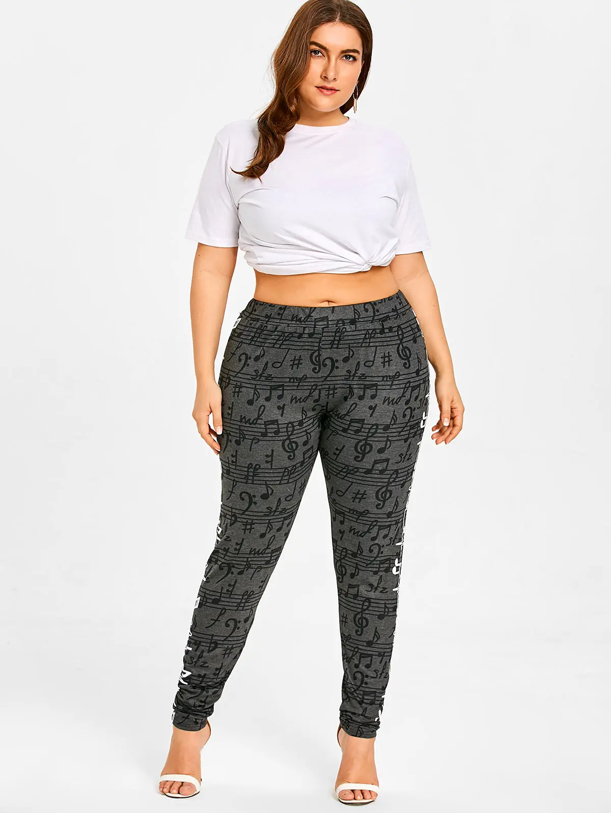AZULINA плюс размеры музыкальные ноты повседневные штаны для женщин для мотобрюки эластичные Высокая талия штаны для фитнеса большой