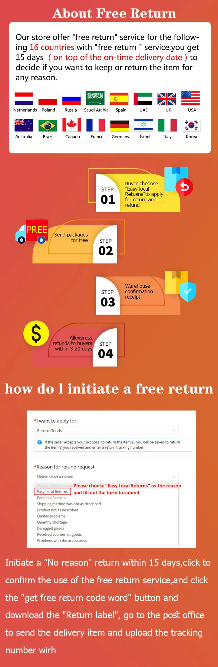 Ваши хорошие отзывы очень важно для нас. Если вы удовлетворены нашим продуктом и обслуживанием, пожалуйста, дайте нам пять звезд, положительные отзывы. Пожалуйста, не оставляйте 1,2,3,4 звезды отзывы, он равен с негативные отзывы. Если у вас есть вопросы по Вашему заказу или если вы считаете, что у вас есть проблемы с вашим заказом, пожалуйста, свяжитесь с нами для разрешения, прежде чем оставить отрицательные отзывы. Мы всегда здесь поможем вам.