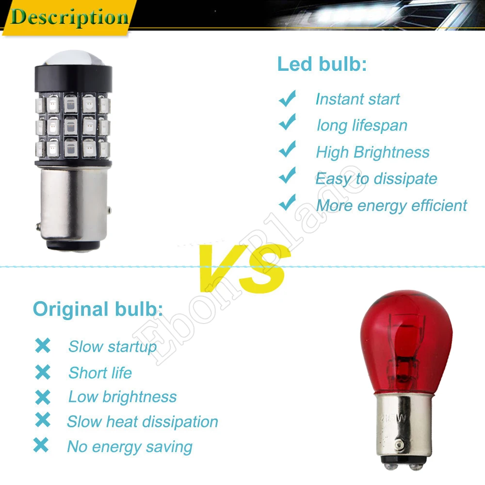 2x красный 1157 Автомобильный светодиодный сигнальный фонарь для заднего тормоза стоп-сигнала 39 SMD BAY15D P21/5W 2357 7528 Авто проектор Глобус лампа 12V 24V