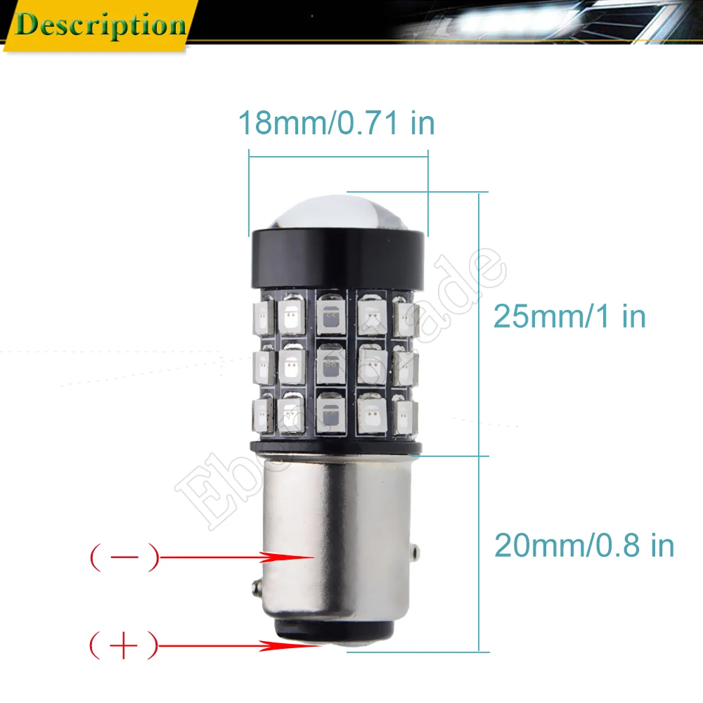 1. Товар: 1157-2835-39SMD Автомобильный светодиодный сигнальный фонарь 2. Напряжение: 12-24 В постоянного тока, но не подходит для грузовиков и автобусов. 3. Светодиодный чип: 39 шт. 2835 Светодиодный чип 4. Количество чипов: 39SMD на светодиодный светильник 5. Цвет: красный 6. Срок службы: до 50 000 часов 7. Сертификация: CE, RoHs 8. Гарантия: 12 месяцев 9. Угол луча: 360 градусов 10. Информация о размере: 45 мм * 18 мм (Д * Ш) 11. Использование для: Автомобильный светодиодный светильник DRL с сигналом поворота, Автомобильный светодиодный задний светильник, Автомобильный светодиодный задний тормозной светильник 12. Посылка: 2 шт. светодиодный автомобильный лампочка