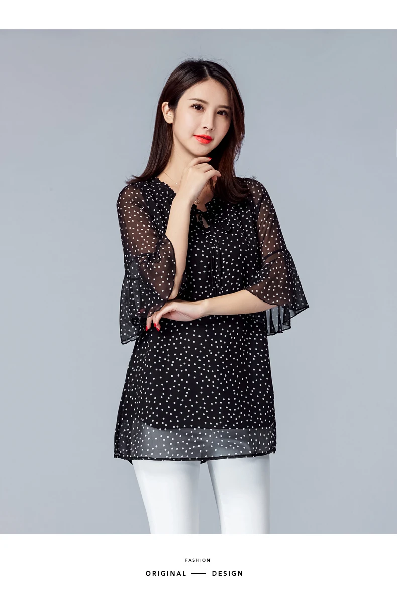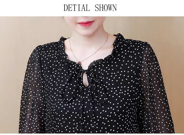 Винтажная длинная рубашка в горошек блузки шифоновые женская платье футболка